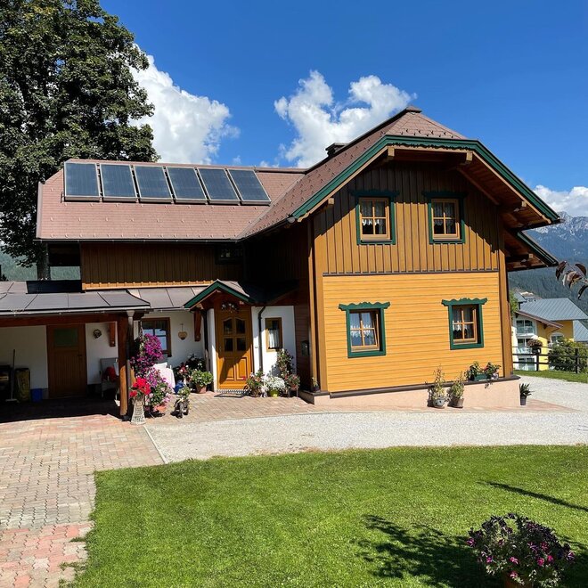 Unser Haus ist mit Vollholzmöbeln ausgestattet und verfügt auch über eine Fußbodenheizung für kalte Wintertage. Natürlich bieten unsere Appartements auch Dusche, WC, eine großzügig eingerichtete Küche und einen herrlichen Panoramabalkon (Wohnung 2), der eine wunderschöne Aussicht auf Schladming und den Dachstein bietet. Am Morgen können Sie auf Wunsch unseren Brötchenservice nutzen, der Sie mit köstlichen Produkten vom örtlichen Bäcker versorgt.