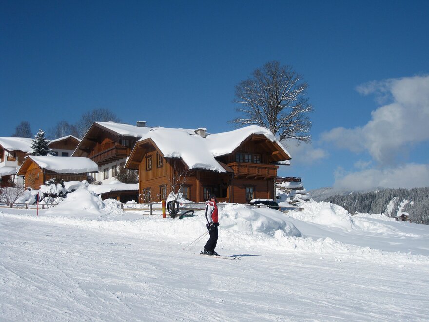 Im Winter sorgt unsere Lage direkt an der Skipiste am Fuße der Hochwurzen für traumhafte Momente im Schnee. Sie finden vor Ihrem Haus den Einstieg in die berühmte 4-Berge-Skischaukel, die Skispaß auf weltmeisterlich präparierten Pisten garantiert. Für Ihre Kleinen gibt es im Winter einen Kinderlift direkt neben unserem Appartement, der auch ihnen ein tolles Skivergnügen ermöglicht. Auch bei Rodelbegeisterten wird mit der beleuchteten Rodelbahn der Hochwurzen, die auch nachts befahrbar ist, kein Wunsch offengelassen. Ein Besuch auf den zahlreichen Winterwanderwegen oder ein Ausflug auf unsere herrlichen Langlaufloipen lohnt sich natürlich ebenso.