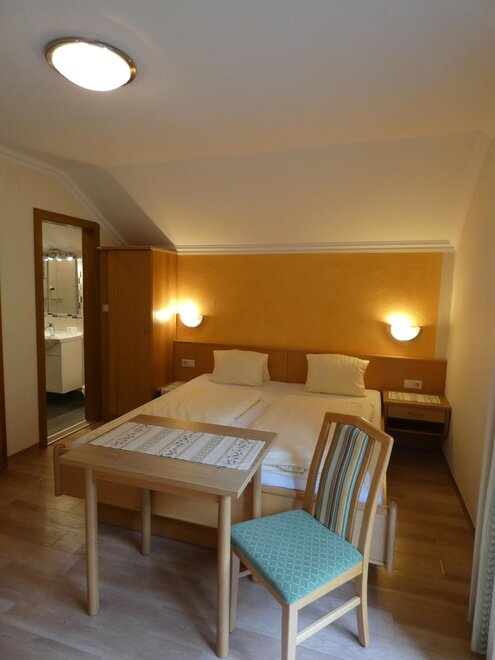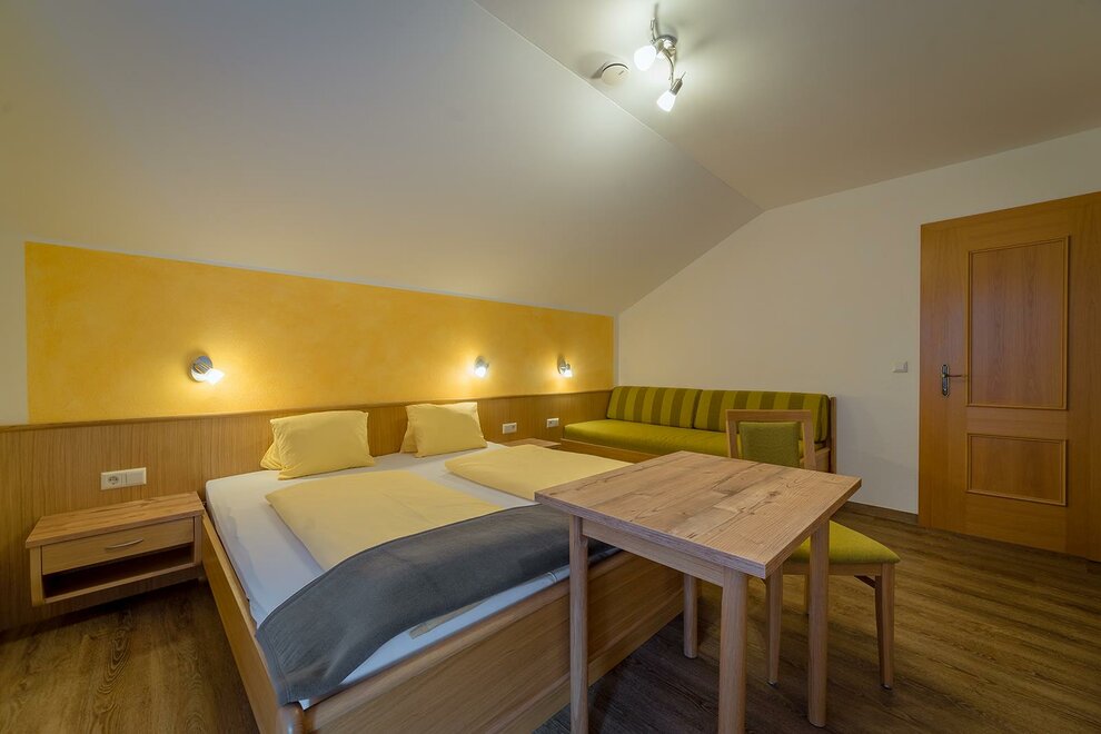 Doppelzimmer Sinabell / 2 - 3 PersonenUnser Doppelzimmer mit Blick auf das Dachstein Gebirge verfügt über ein Doppelbett mit zusätzlich einer Schlafcouch.