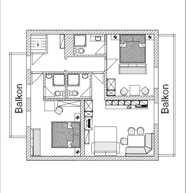 Appartement Eselstein (65m²) 4 - 8 PersonenDas Appartement mit Blick Richtung Süden und Norden verfügt über 2 Schlafzimmer mit jeweils einem Doppelbett und einer Schlafcouch für eine Person. Im Wohn- und Essbereich befindet sich weiters eine Schlafcouch für weitere 2 Personen. Das Appartement verfügt über 3 vollausgestattete Badezimmer.