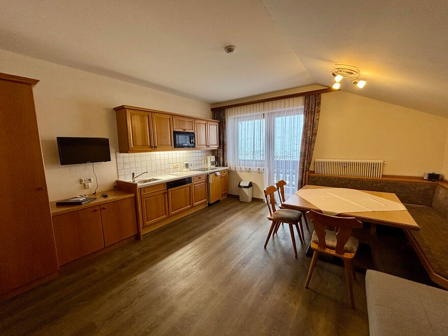 Appartement Planai (45m²) 2 - 5 PersonenUnser charmantes Appartement Planai bietet gemütlichen Wohnkomfort und viel Flexibilität für unsere Gäste. Das Schlafzimmer mit Südblick verfügt über ein komfortables Doppelbett sowie eine zusätzliche Schlafcouch für eine Person.