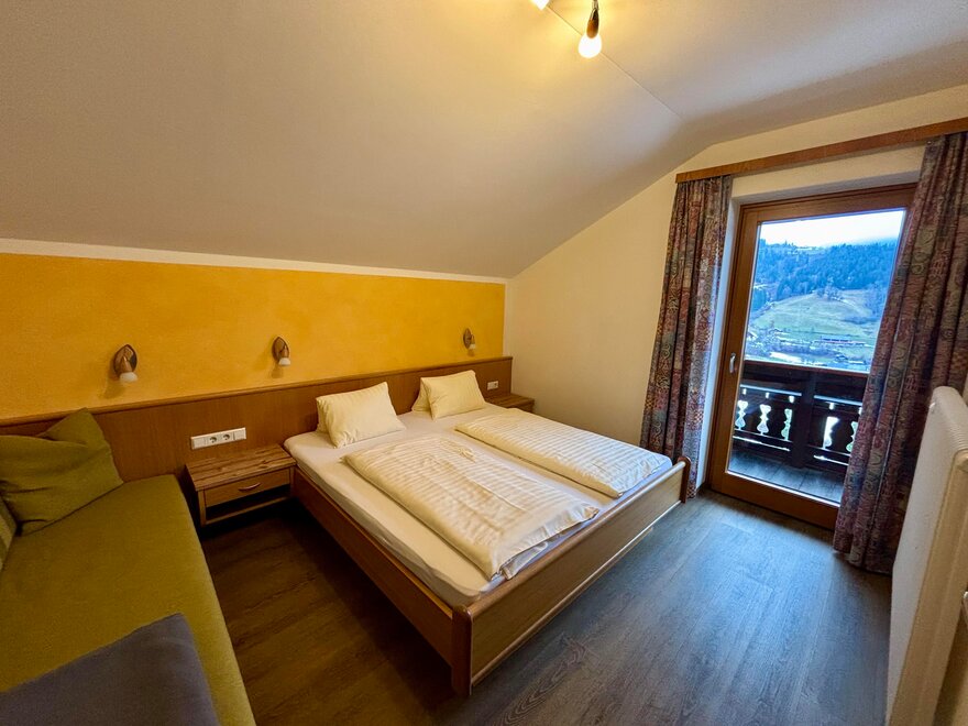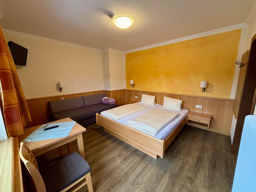 Doppelzimmer Sinabell / 2 - 3 PersonenGenießen Sie entspannte Urlaubstage in unserem gemütlichen Doppelzimmer Sinabell. Das Zimmer ist mit einem komfortablen Doppelbett sowie einer zusätzlichen Schlafcouch für eine Person ausgestattet. Ideal für Paare, kleine Familien.