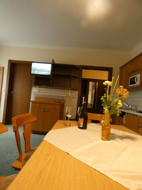 Familär geführtes Haus, 2 km östlich vom Zentrum in schöner Aussichtslage. Skibushaltestelle vorm Haus. Alle Appartements sind mit mind. 2 Bädern ausgestattet. Jeden Tag Brötchenservice. Auf Wunsch bereiten wir Ihnen aber auch gerne das Frühstück.