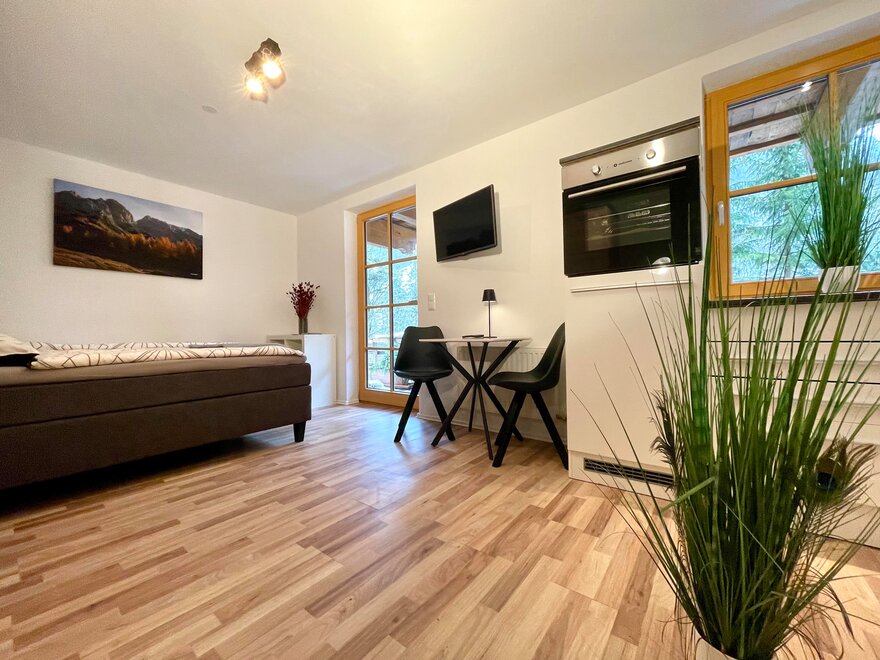Dieses ganz neue Appartement am Waldrand ist hochwertig eingerichtet. Sie gelangen über eine Aussentreppe direkt zu ihrem Appartement. Kein anderen Gäste gelangen dorthin. Hier befindet sich direkt auch die große, überdachte Terrasse und im Sommer gibt es hier auch eine kleine Liegewiese nur für sie. Geschirrspüler, Backofen, Kühlschrank mit Gefrierfach, Nespresso-Maschine, Wasserkocher und hochwertige Küchenutensilien sind in der Küche vorhanden. Für den Erstgebrauch liegen immer auch Kapseln, Teebeutel, Zucker, Salz, Pfeffer für sie bereit. Eine Garnitur Handtücher und Bettwäsche sind im Appartement vorhanden. Das Appartement ist im Ortsteil Ramsau Rössing. Langlaufloipeneinstieg in direkter Nachbarschaft und zu den verschiedensten Skibergen brauchen sie mit dem Auto ca. 10 Minuten. Eine Bushaltestelle ist in direkter Nähe. Kinder im Bett der Eltern kostenfrei. Haustiere erlaubt. Bis nach Schladming fahren sie ca. 10 Minuten über Birnberg. Einkaufsmöglichkeiten, Restaurants finden sie allerdings auch in Ramsau. Für unsere Gäste steht immer ich ein kostenfreier Parkplatz zur Verfügung. WLAN kostenfrei vorhanden. WinterCard Mitgliedsbetrieb! Nutzen sie die Vorteile der WinterCard z.B. erhalten sie Ermässigung auf die Loipenkarte, Ramsauer Busse.... Im Sommer sind wir Mitgliedsbetrieb der Sommerkarte mit sehr vielen Vergünstigungen, wie z.B. gratis Seilbahnen, Ermässigungen.....