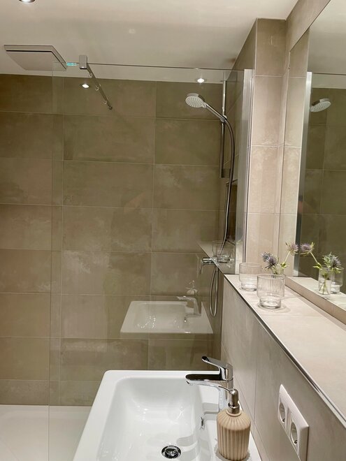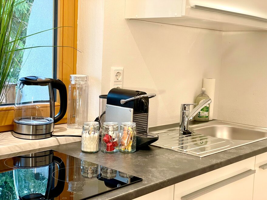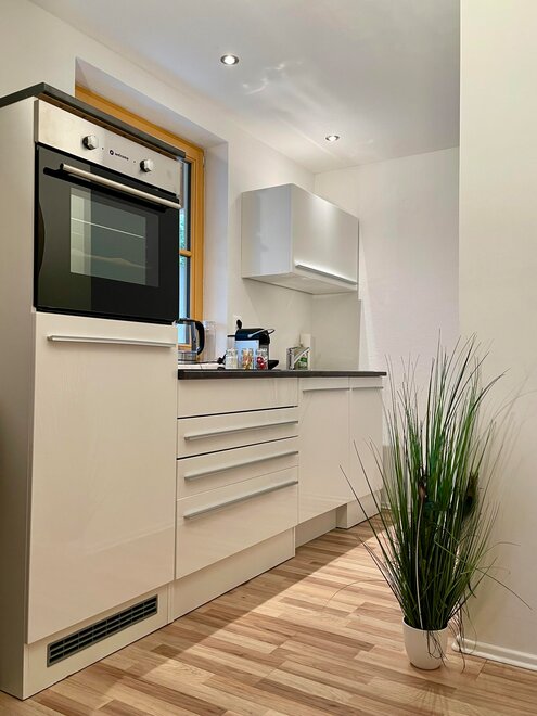 Das neue Appartement ist hochwertig ausgestattet, Kingsize Bett, Küche mit Spülmaschine, Kaffemaschine, Wasserkocher, Kühlschrank mit Gefrierfach, Herd mit Backofen, modernes Bad, eigene, überdachte Terrasse mit Möbeln, eigener Parkplatz am Haus, seperater Eingang.
