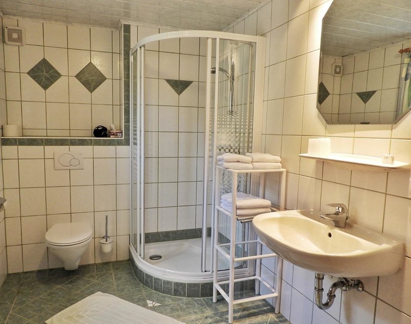 WC, Bad, Dusche, Fließendes Kalt- und Warmwasser, Separates WC, Doppelwaschbecken