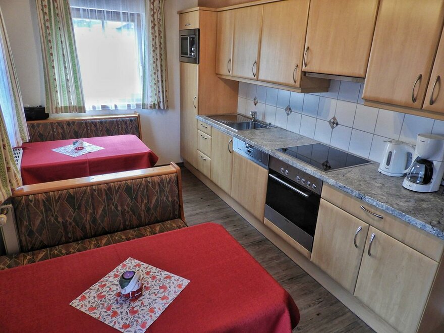 Die Ferienwohnungen verfügen über 2 bis 3 Schlafzimmer, Wohnküche, Vorraum, Bad mit Badewanne, Haartrockner und Doppelwaschtisch sowie eine separate Toilette. Zudem sind die Appartements mit Fernseher (inklusive Satellitenempfang), Küche und Kühlschrank, Elektroherd und Backofen, Mikrowellenherd, Kaffeemaschine, Radio, Geschirr, Bettwäsche sowie mit Frottee- und Geschirrtücher ausgestattet. Unsere Gäste müssen im Appartementhaus Knaus nicht auf das Internet verzichten, durch unser gratis W-Lan können Sie jederzeit online gehen und Surfen.