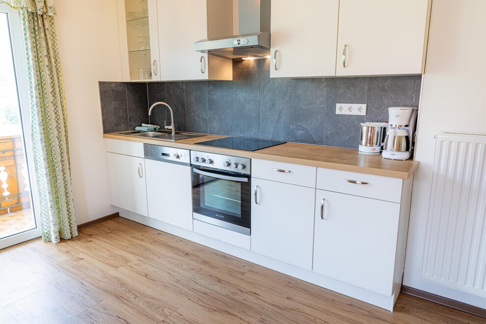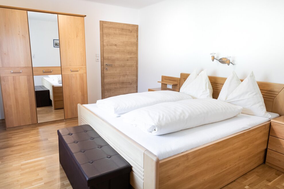 Die zweite Ferienwohnung bietet Platz für 4 bis 6 Personen. Sie verfügt über 2 getrennte Schlafzimmer, (1 Doppelzimmer, 1 Dreibettzimmer - drittes Bett 140cm breit) wobei auch hier jedes Zimmer über ein eigenes Bad verfügt. Eine gemütliche und voll ausgestattete Küche lässt keine Wünsche offen. Als Highlight gibt es auch eine eigene Sauna.