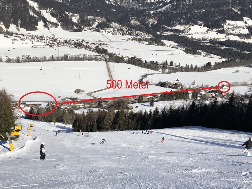 Winter: ca. 5 Gehminuten von der Hauser Kaibling 8er Gondelbahn entfernt.
