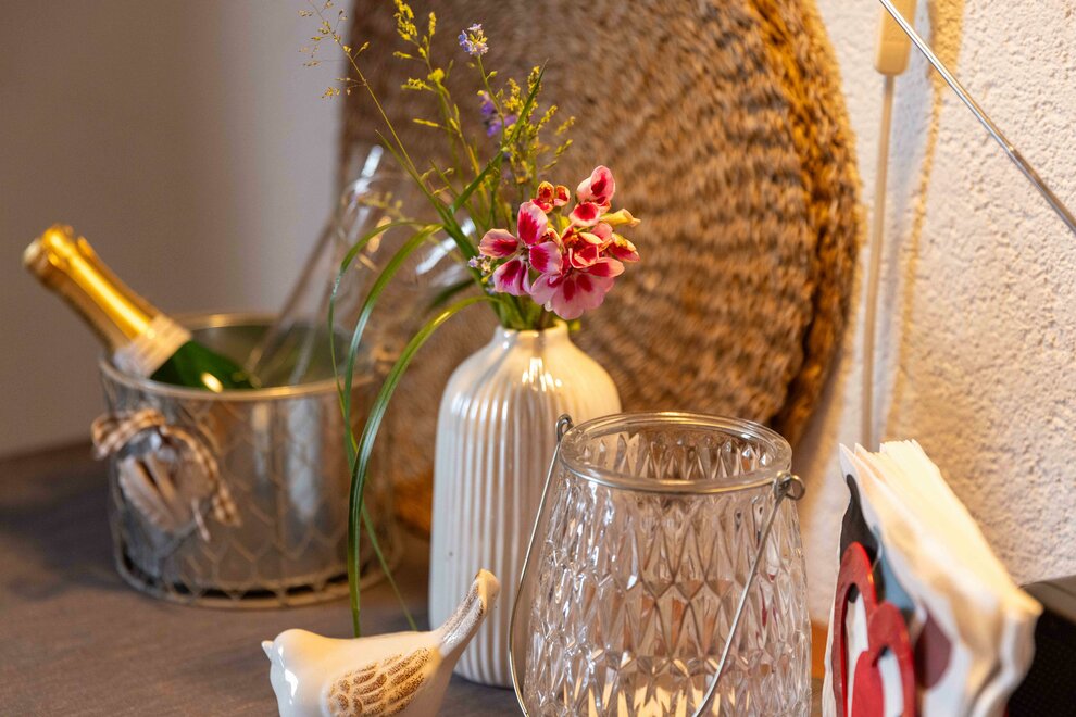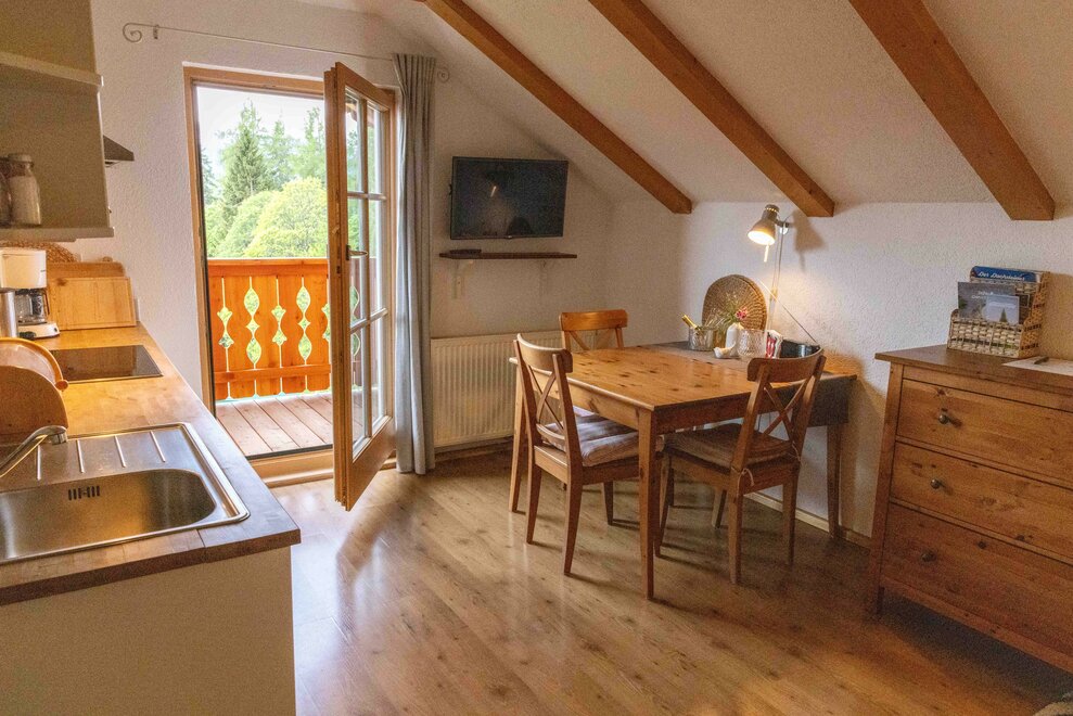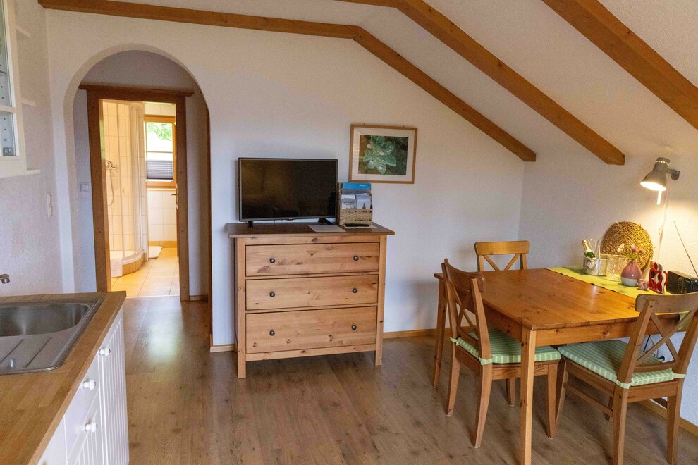 Die "liebevolle" Ferienwohnung "Reh" für 2 Personen, Südbalkon, Dusche/WC, Wohnküche mit Sat-TV und Radio, W-Lan, Schlafzimmer, läd ein zum Ruhen und Sonnen!!