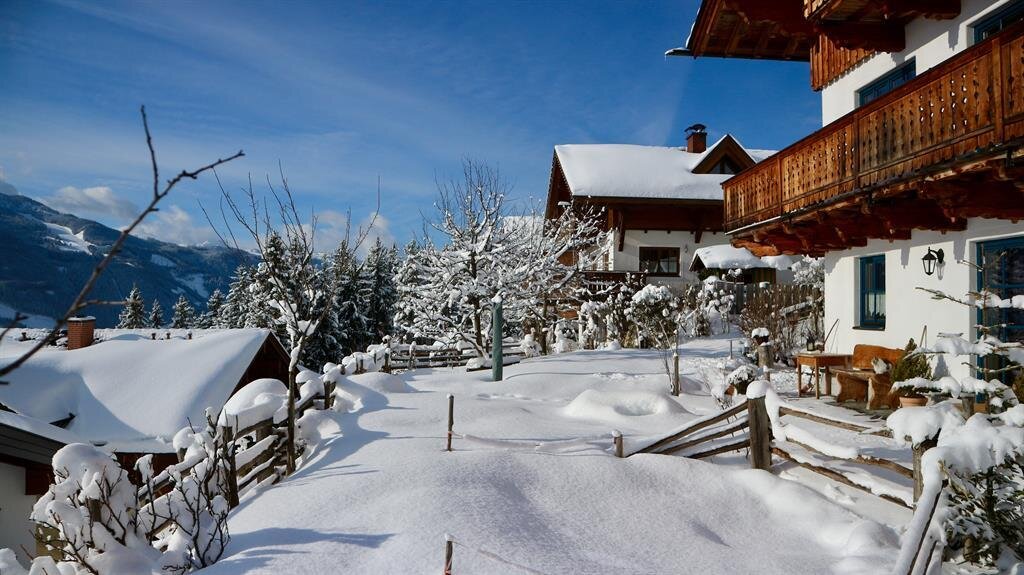 Auf einer Höhe von 1100 m haben Sie freien Blick auf die umliegenden Schiberge und können die Sonnenstunden auf unserer gemütichen Terrasse, mit direkten Zugang von den Appartements, genießen.