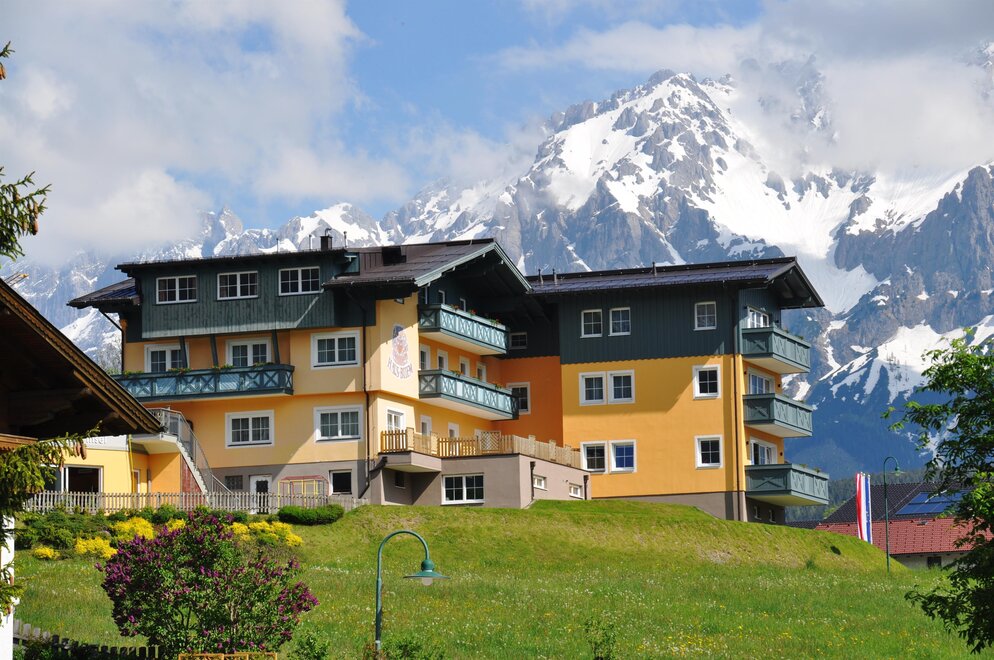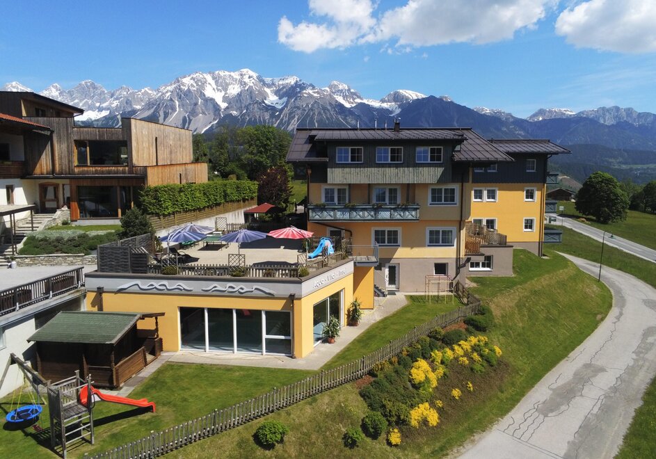 Wir heißen Sie herzlich Willkommen in unserem Apparthotel Ferienhaus Bliem in Rohrmoos in der erlebnisreichen Urlaubsdestination Schladming-Dachstein. Zentral gelegen bietet unser Apparthotel Ferienhaus Bliem den optimalen Ausgangspunkt für Ihren Sommer- und Winterurlaub mit Freunden und Familie. Lassen Sie Ihr Auto einfach stehen, denn in nur 5 Gehminuten erreichen Sie die Skipiste des Top Skigebiet 4-Berge-Skischaukel von Schladming und genießen bestens präparierte Pisten. Die Abfahrt bringt Sie bei ausreichender Schneelage wieder bis zur Haustür des Apparthotel Ferienhaus Bliem. Auch im Sommer starten Sie Ihre Ausflüge direkt von Ihrer Unterkunft mit dem ebenfalls nur 5 Gehminuten entfernten Wanderbus. Im Apparthotel Ferienhaus Bliem verbringen Sie Ihren Urlaub in gemütlichen Doppelzimmern oder in einer unserer 10 Ferienwohnungen, die ausreichend Platz für 2 bis 7 Personen bieten. Unser riesiger Kinderspielraum bietet viel Platz zum Toben und lässt Kinderherzen höher schlagen. Starten Sie einen aktiven Urlaubstag beim Wandern oder im Schneeparadies im Skigebiet 4-Berge-Skischaukel an unserem reichhaltigen Frühstücksbuffet. Auch Gäste der Ferienwohnung können auf Wunsch am Frühstücksbuffet so richtig schlemmen. Einmal pro Woche verwöhnen wir unsere Gäste auf der sonnigen Hotelterrasse mit saftigen Koteletts, herzhaftem Gemüse und knackigen Salaten. Zum Abschalten vom Alltag oder nach einem aktiven Urlaubstag in der Ferienregion Schladming-Dachstein entspannen Sie in unserem Wellnessbereich Aqua-Vital-Insel mit Sauna, Dampfbad, Infrarot-Wärmekabine und Indoor-Pool mit direktem Zugang ins Grüne. Im Sommer bieten wir für unsere Gäste geführte Wanderungen mit Wanderführer Wolfgang, auf denen Sie gemeinsam Themenweg oder sportliche Alpinwege in den Schladminger Tauern oder im imposanten Dachsteingebirge erkunden. Als staatlich geprüfte Tennislehrerin hilft Ihnen Elisabeth den richtigen Einstieg beim Tennis zu finden oder bei einem Match Ihr Spiel zu verbessern. Für Golftipps und Informationen zum Golf & Country Club Dachstein-Tauern sind Sie bei Christina bestens aufgehoben. Große und kleine Pferdesportbegeisterte können im benachbarten Angererhof Reitstunden nehmen und ihre Technik im Sattel verbessern. Auch für den Winterurlaub ist das Apparthotel Ferienhaus Bliem der optimale Startpunkt für Ihre Touren mit der Familie. Die Skischule befindet sich gleich direkt an Einstieg in die 4-Berge-Skischaukel von Schladming. Bei einer romantischen Pferdeschlittenfahrt erkunden Sie die Rohrmooser Täler Obertal und Untertal. Die Skibushaltestelle ist ebenfalls nur 5 Gehminuten entfernt und bringt Sie zum Rodeln und Skifahren auf die Hochwurzen. Wolfgang und Elisabeth Huber mit Tochter Christina freuen sich darauf, Sie im Apparthotel Ferienhaus Bliem in Rohrmoos bei Schladming zu begrüßen!