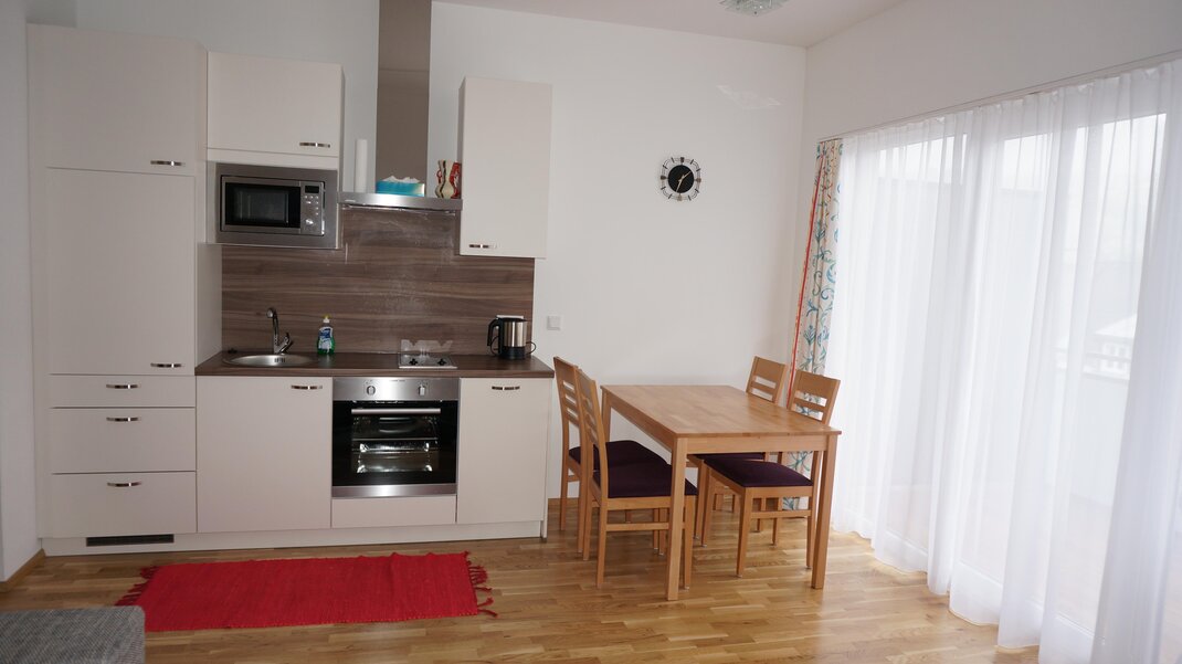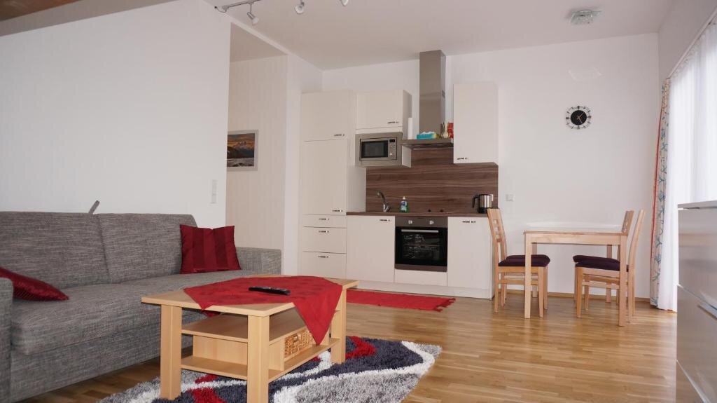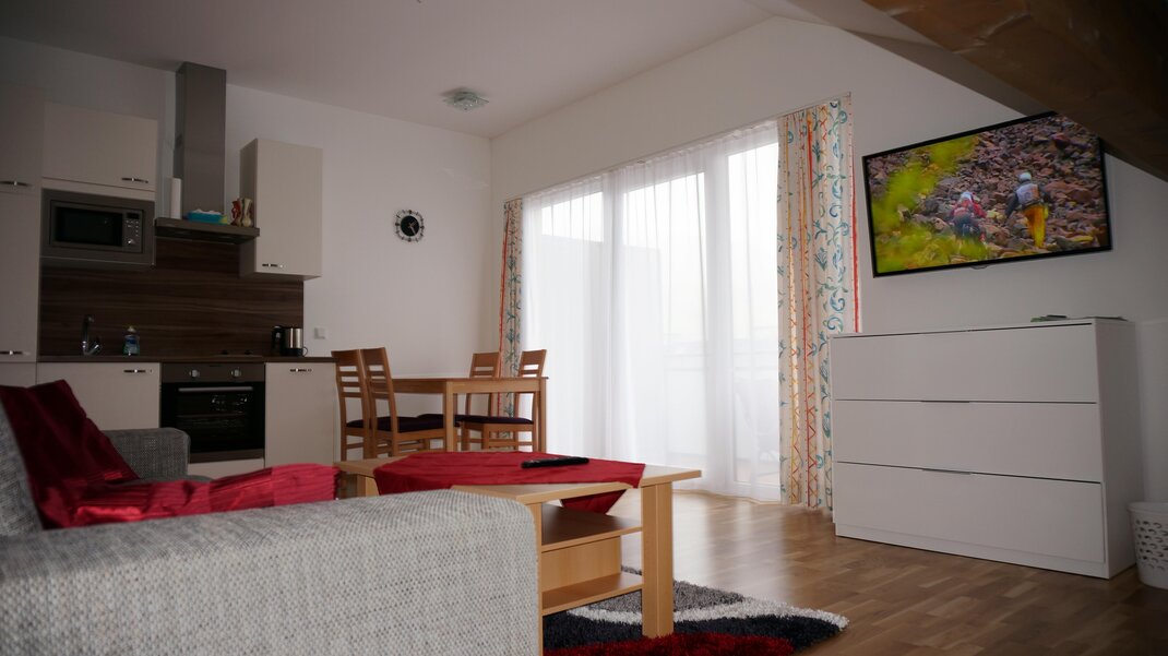 Das Apartment befindet sich im 3.Stock mit eigenem Eingang. Die Ferienwohnung besteht aus einem gemütlichen Schlafzimmer mit Doppelbett, Bad mit Dusche/WC, Vorraum mit Garderobe, Wohnzimmer mit Schlafcouch und voll ausgestatteter Küche. Zur Ausstattung zählen neben kostenlosem WLAN-Internet, Sat-TV und Radio auch Kühlschrank, Geschirrspüler, Mikrowelle, Kaffeemaschine, Teekocher und einen E-Herd mit Backrohr. Die Planaibahn erreichen Sie in nur 7 Gehminuten. Diverse Supermärkte, Restaurants, Arzt, Hallenbad, Tennishalle, die Post, eine Skischule mit Skiverleih, Sportgeschäfte sowie sowie generell das Stadtzentrum sind ebenfalls nur wenige Minuten vom Haus entfernt.