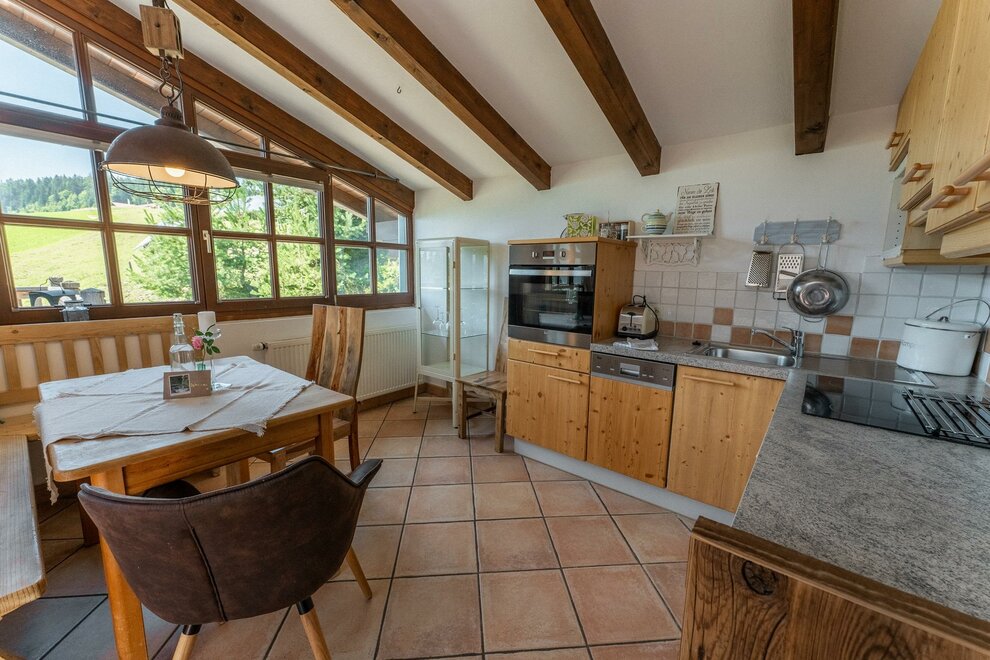 Küche: Grundausstattung, Herd mit Cerankochfeld/Backofen, Geschirrspüler, Kaffeemaschine, Wasserkocher, Toaster, etc., Sitzecke,
