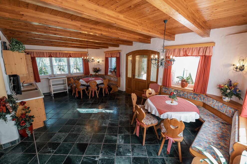 Gesellige Stunden verspricht unser großer Aufenthaltsraum, den wir für das lustige Beisammensein eingerichtet haben. Die gemütlichen Sitzmöglichkeiten, voll ausgestattete Küche, Bodenheizung und Flat-TV tragen zur Gemütlichkeit bei.