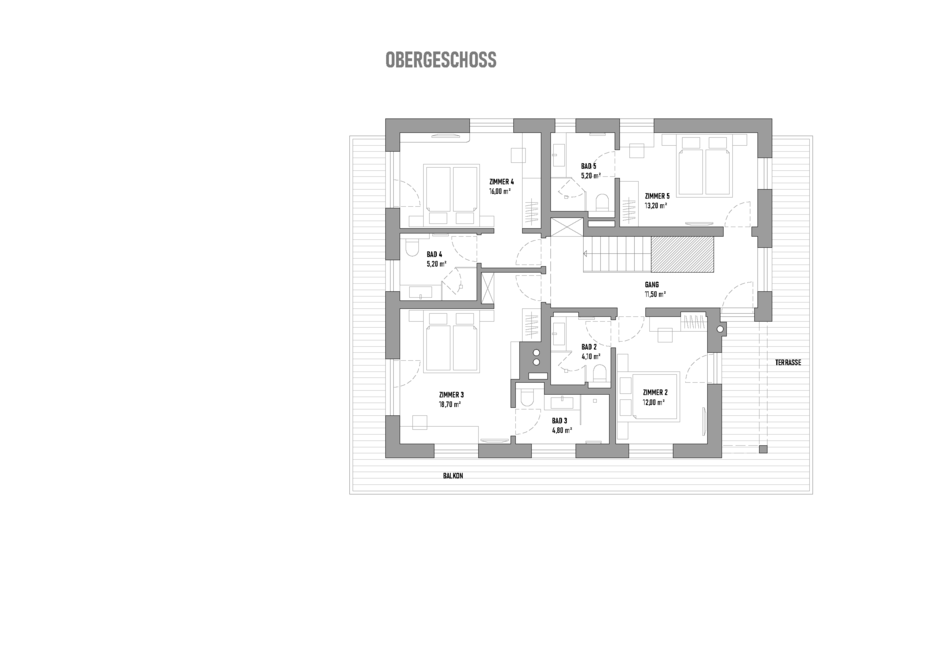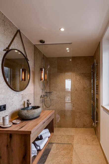 Chill House in bohemian Style für max. 10 Personen, 200m2 in Skipistennähe, Ferienhaus, Chalet- 5 getrennte Schlafzimmer mit 5 Ensuite Bädern mit Dusche und WC in Boho Style, 3 Schlafzimmer mit Doppelbetten ( 180*200), 1 Schlafzimmer mit französischem Bett (160*200), 1 Schlafzimmer mit einem Doppelbett (180*200), davon 3 Schlafzimmer mit Balkon,