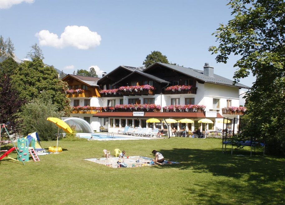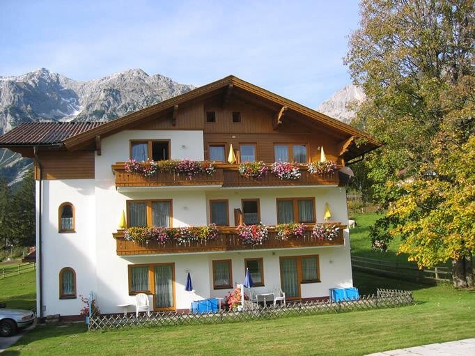Lassen Sie sich verwöhnen und genießen Sie ihren Urlaub in familiärer Atmosphäre von der Ankunft bis zur Abreise. Unsere mit 3*** Sterne ausgezeichnete Pension Alpenbad liegt in der Ferienregion Ramsau am Dachstein inmitten der beeindruckenden Naturkulisse des Dachsteins. Wandern Sie gemütlich auf gut markierten Wanderwegen oder steigen Sie direkt vorm Haus in die Loipen und Winterwanderwege ein. Genießen Sie bei traumhaften Naturschnee- und Pistenverhältnissen den atemberaubenden Winter am sonnigen Hochplateau auf 1100m Seehöhe. Mit einer Top Lage im Ortsteil Kulm finden Sie den idealen Ausgangspunkt für Ihre Sommer- und Winteraktivitäten. Unsere 10 geräumigen und hellen Zimmer mit gemütlicher Sitzecke, Sat-TV, Telefon und teils einem Tageslichtbadezimmer besitzen jeglichen Komfort den man sich im Urlaub wünscht. Zusätzlich bieten wir im Nebenhaus, welches mit einem Verbindungsgang mit dem Haupthaus verbunden ist, 7 komfortable Ferienwohnungen in 3 verschiedenen Typen an. Die 4**** Sterne Ferienwohnungen von 40m² für 2- 4 Personen über 55m² für 2-6 Personen bis 70m² für 2 - 7 Personen eignen sich ideal für einen Familienurlaub in den Bergen. Jede der Ferienwohnungen verfügt über eine voll ausgestattete Küche mit E-Herd, Mikrowelle und Geschirrspüler sowie einem Kachelofen und einer komfortablen Essecke mit ausreichenden Platzangebot. Die Badezimmer sind mit Dusche und separatem WC ausgestattet. Zu allen Zimmern und Ferienwohnungen gehört auch ein eigener sonniger Balkon mit Blick auf die umliegende Bergwelt des Dachsteins und der Schladminger Tauern. Auf der möblierten Terrasse sowie im Garten mit Liegewiese und beheizten Freibad können Sie die Sonne genießen. Ein Erlebnis für unsere Gäste ist auch der selbst angelegte Barfußweg. Ihre Kinder können sich auf der großen Spielewiese austoben. Gerne können Sie unser kostenloses WLAN im ganzen Haus nutzen. Ein Skiraum mit Skischuhtrockner steht Ihnen ebenfalls zur Verfügung. Starten Sie den Tag mit einem ausgiebigen Frühstück und bedienen sich an unserem reichhaltigen Buffet welches frisches Obst, Joghurt, unterschiedliche Müslisorten, Vollkornbrot und einer Auswahl an verschiedenen Wurst- und Käsesorten beinhaltet. Versüßen Sie sich den Nachmittag in unserm Café mit selbstgemachten Mehlspeisen, zubereitet von der Chefin des Hauses. Am Abend bereiten wir Ihnen ein 4 Gänge Wahlmenü mit regionalen sowie saisonalen Produkten. Gerne kochen wir für Sie auch gluten- und lakosefreie Gerichte. Gerne können Sie als Gast in den Ferienwohnung auch das Frühstück oder Abendessen dazu buchen. In unserem hellen Wellnessbereich mit einladenden Ruheraum, finnischer Sauna, Dampfkabine, Infrarotkabine, Fußtretbecken, Wärmebank und Schwalldusche erleben Sie entspannende Momente nach einem aktiven Wander-, Langlauf- oder Skitag. Entdecken Sie ein abwechslungsreiches Wanderparadies auf 3 Ebenen und erkunden Sie mit der Schladming Dachstein Sommercard die schönsten Ausflugsziele der Region. Im Winter erwarten Sie ca 220 km herrlich gespurte Langlauf- und Skatingloipen, 70km Winterwanderwege, Rodelspaß, Skivergnügen auf Kalis Erlebnispisten oder eine gemütliche Pferdeschlittenfahrt mit Einkehr in einer der urigen Hütten oder Bauernstuben von Ramsau am Dachstein. Wir, Ihre Gastgeberfamilie Schrempf möchten uns ganz persönlich um Ihr Wohl bemühen und freuen uns Sie schon bald als Gast bei uns in der Pension Alpenbad begrüßen zu dürfen.