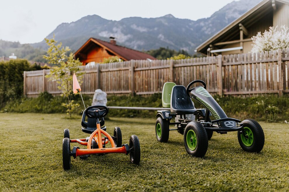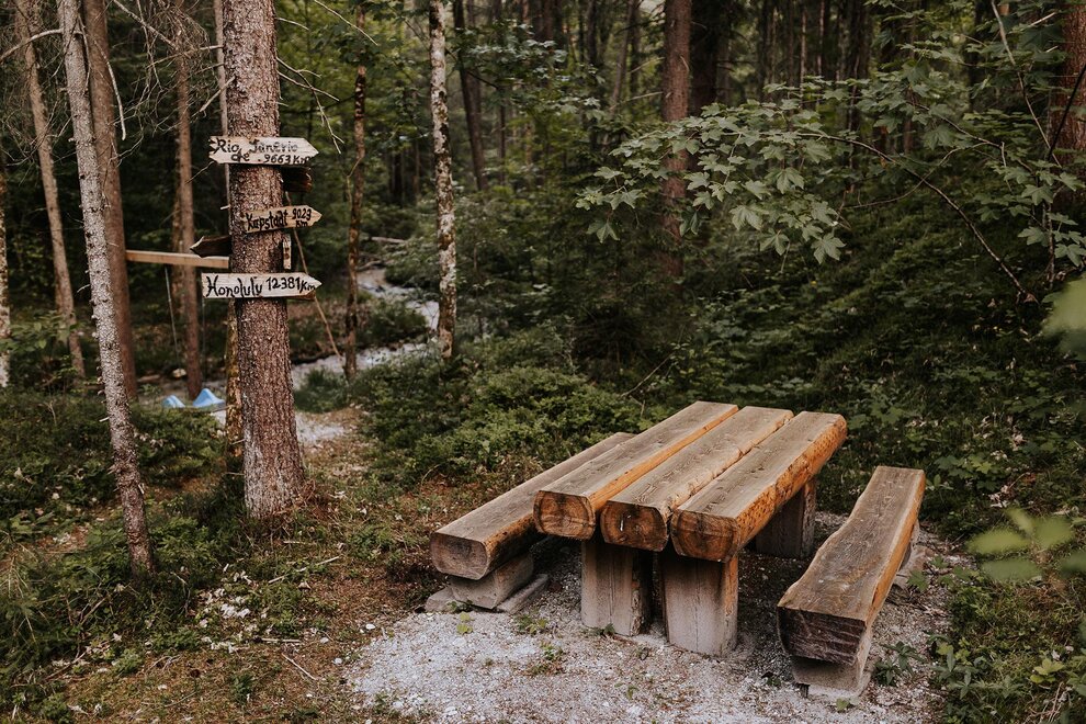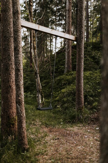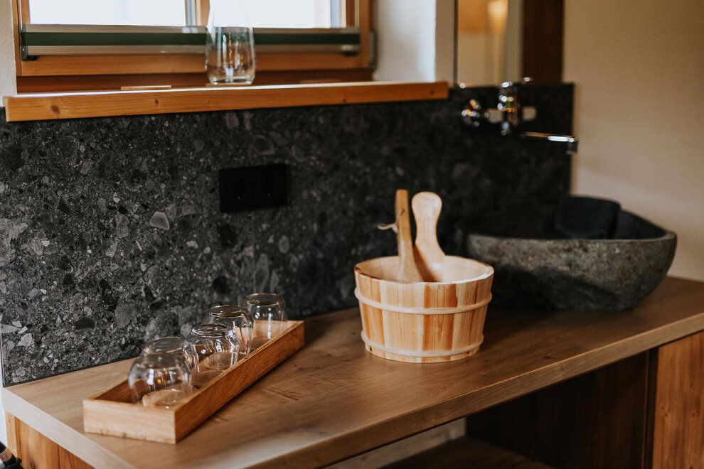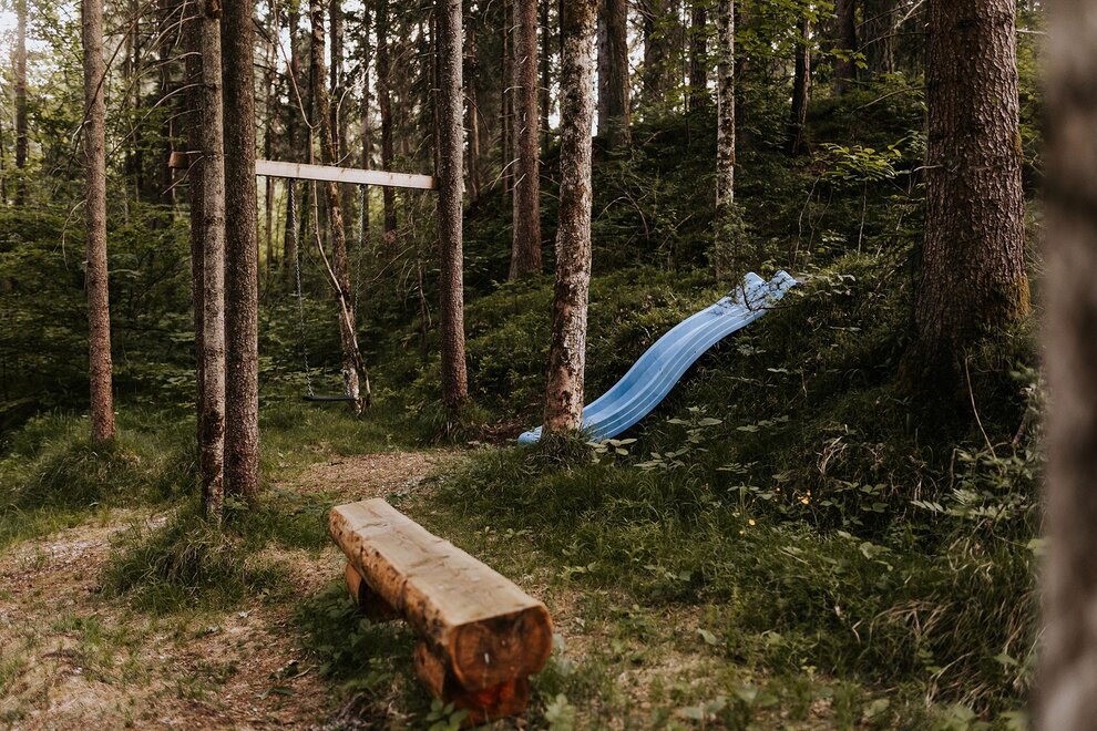 Im offenen Wohnbereich mit voll ausgestatteter Küche und gemütlichem Kachelofen lassen sich unvergessliche Momente mit Familie oder Freunden verbringen. Für erholsame Stunden sorgt das private Saunahaus mit eigener Dusche und WC. In den warmen Monaten laden die große Terrasse und der angrenzende Garten zu entspannten Grillabenden ein, während Kinder sich am eigenen Spielplatz, beim Slacklinen, Fußballspielen oder am kleinen Bach austoben können. Ein kinderwagenfreundlicher Waldweg führt in wenigen Minuten zur idyllischen Kneippanlage.