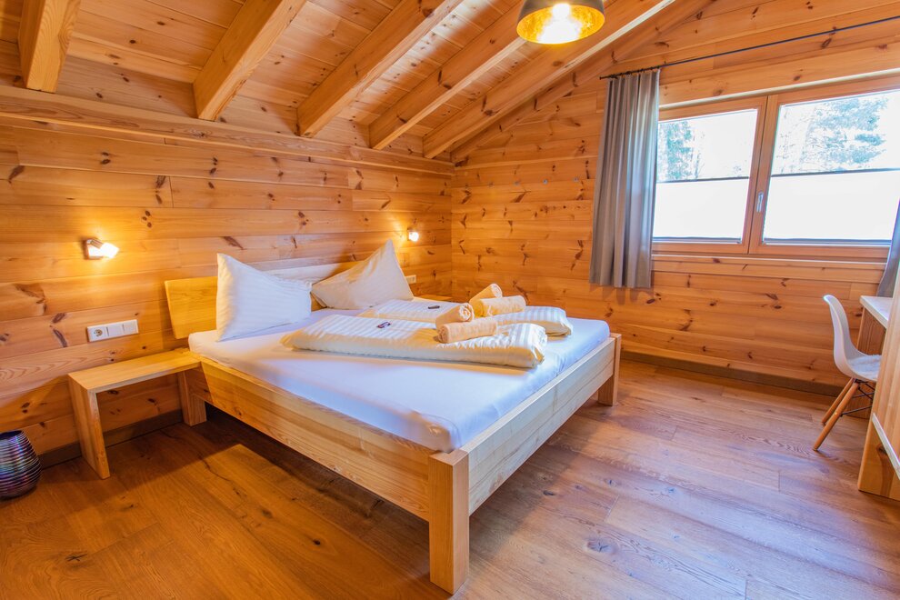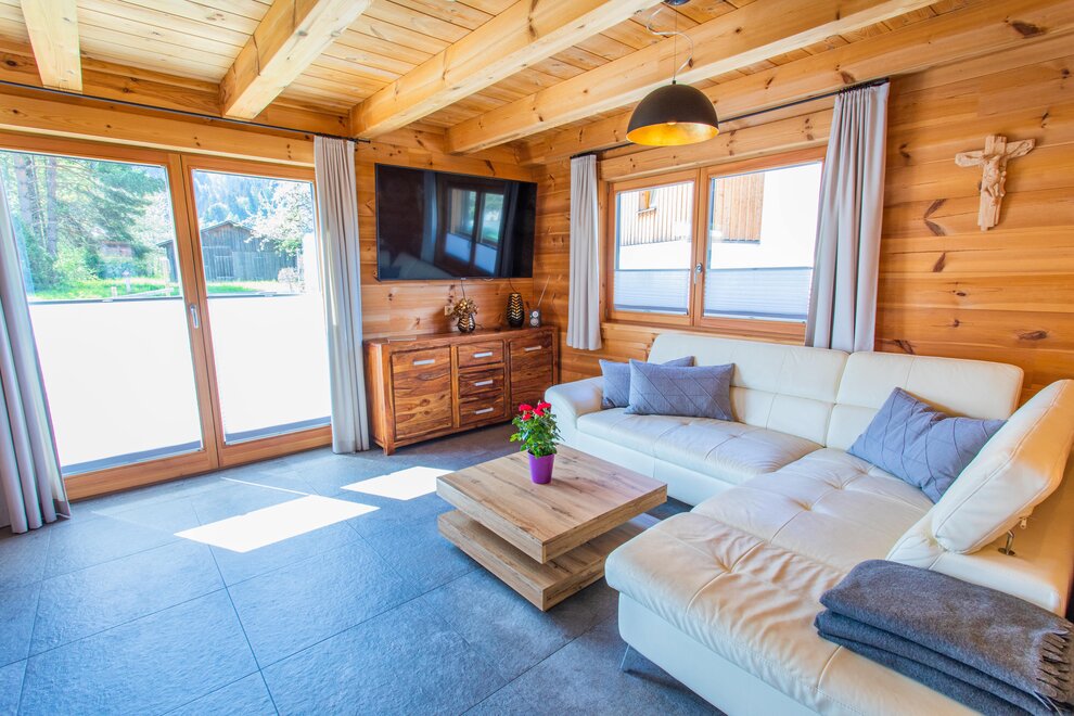 Auf zwei Etagen und ca. 140 m² bietet das Chalet Huber Platz für bis zu zehn Personen. Die Einrichtung verbindet gemütlichen Alpenstil mit moderner Ausstattung.