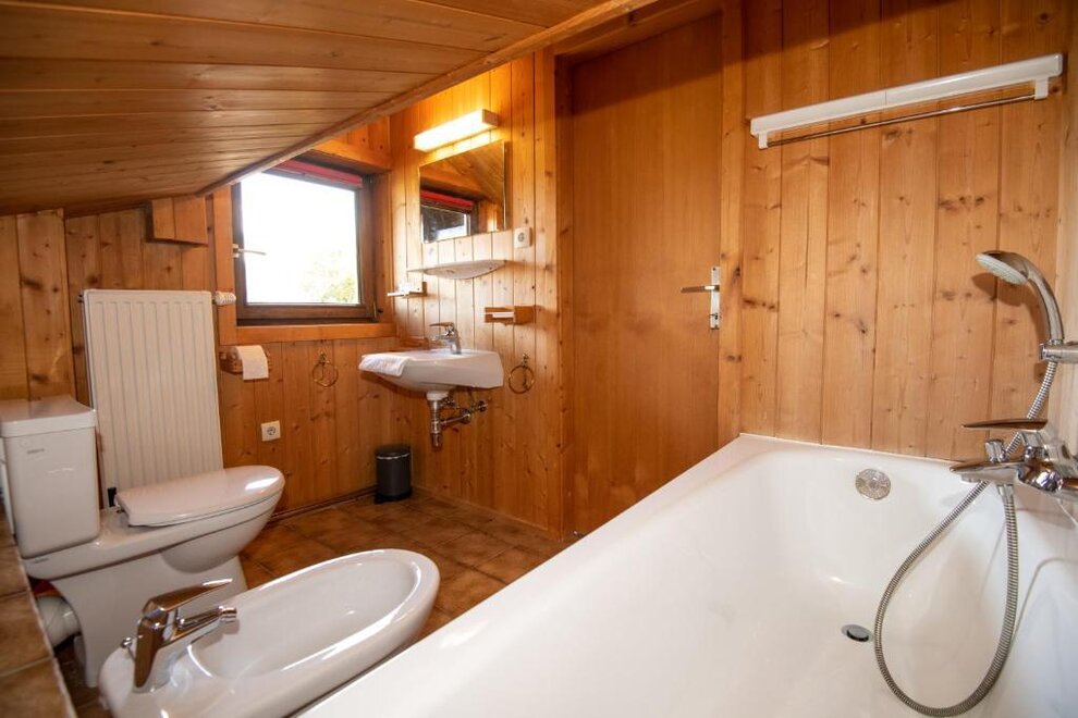 Das CHALET bietet 4 Schlafzimmer mit 3 Doppelbetten, ein 1 Stockbett, 2 Einzelbetten, extra Küche mit großer Essecke, so dass wirklich 10 Personen zusammen sitzen können. Außerdem ein gemütliches Wohnzimmer, 3 Badezimer mit Dusche und 3 WCs.
