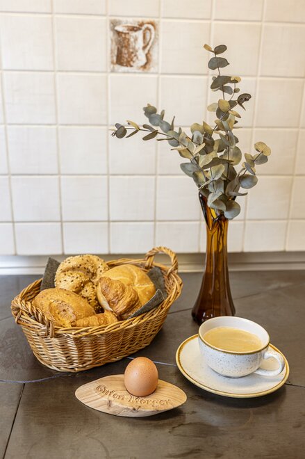 Unsere großzügige Gästeküche steht Ihnen jederzeit zur freien Selbstverpflegung zur Verfügung. Je nach Aufwand € 15,-- pro Familie/Tag.