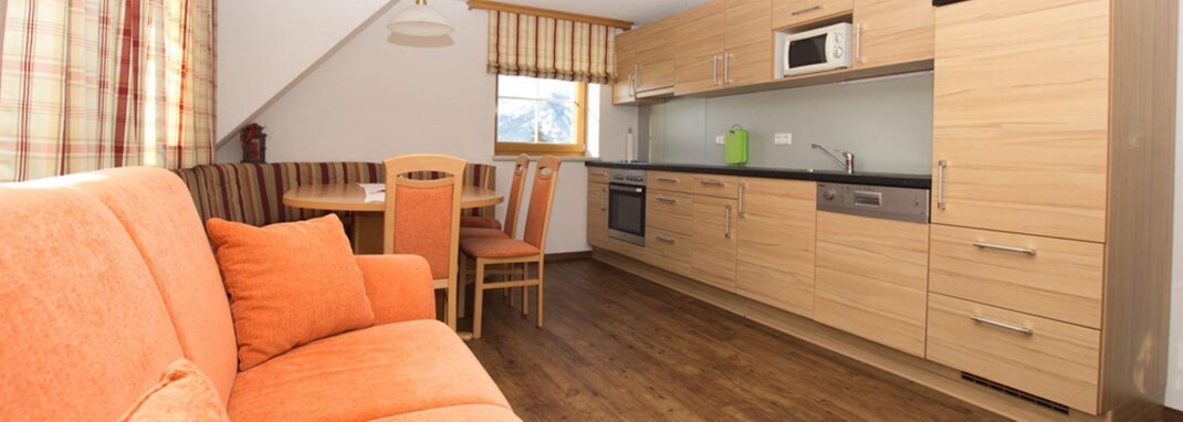 Das zweite Appartement bietet Platz für 6-7 Personen und verfügt über 3 separate Doppelzimmer und einer Ausziehcouch, ansonsten ist es ausgestattet wie das kleinere Appartement.