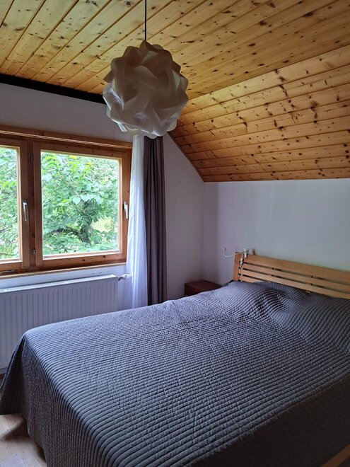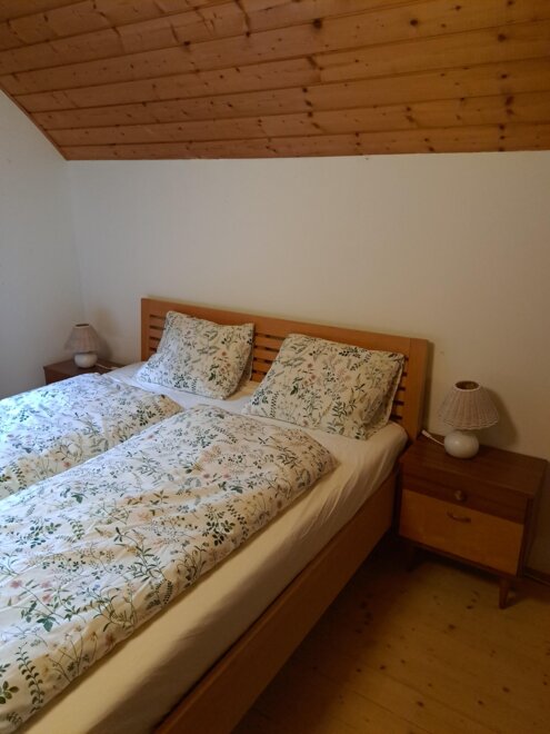 Das alte Holzhaus verfügt über modernen Komfort, eine voll ausgestattete Wohnküche, ein neues Badezimmer und drei Schlafzimmer mit Doppelbetten. Die Unterkunft bietet mit 90 Quadratmetern bequem Platz für vier Personen, möglich sind bis zu sechs Personen. Das Haus ist aufgrund der steilen Treppen nicht barrierefrei.