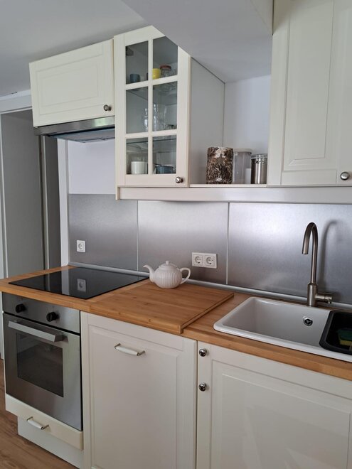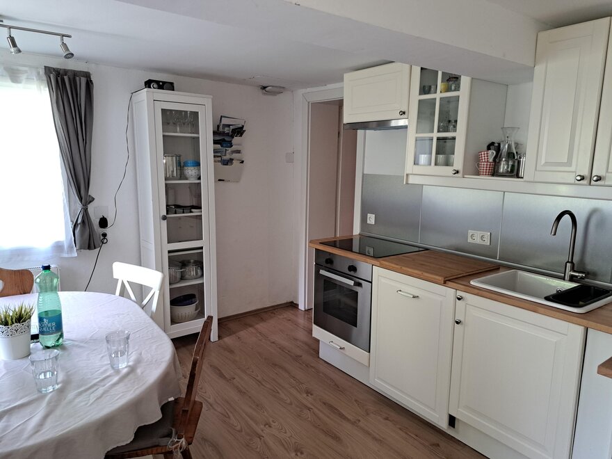 Kochmöglichkeiten, Vorraum, Dunstabzug, Wasserkocher, Haustiere mit Rücksprache gestattet, Holz- oder Parkettboden, Fernseher, Geschirr vorhanden, Elektroherd, Waschmaschine, Garten, Geschirrspülbecken, Größe m²: 90, Balkon (teilweise), Wohnküche, Separate Schlafzimmer: 3, Schreibtisch, Küchenzeile, Gartengrill, Nichtraucher Zimmer/App./Whg., Allergikerbettwäsche, Schrank, Küche, Steckdose in Bettnähe, Grundausstattung (Handtücher, Bettwäsche, Seife, Toilettenpapier), Max. Haustiere: 2, Feuerlöscher, Terrasse, Haarföhn, Zentralheizung, Moderne Möblierung, Rustikale Möblierung, Einfache Möblierung, Rauchmelder, Bettwäsche vorhanden, Toaster