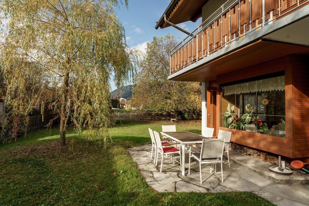 Ein besonderes Highlight ist der große Garten, der mit seinen alten, schattenspendenden Bäumen und viel Platz zum Spielen und Entspannen begeistert. Hier können Kinder toben, während die Erwachsenen den Duft von frisch gemähtem Gras genießen. Im Sommer lädt der Garten zu geselligen Grillabenden ein, während der Winter den Blick auf die schneebedeckte Landschaft direkt vor Ihrer Haustür freigibt.