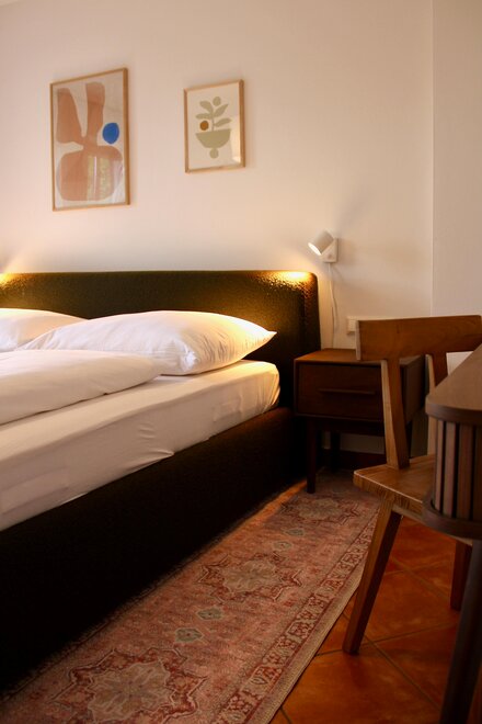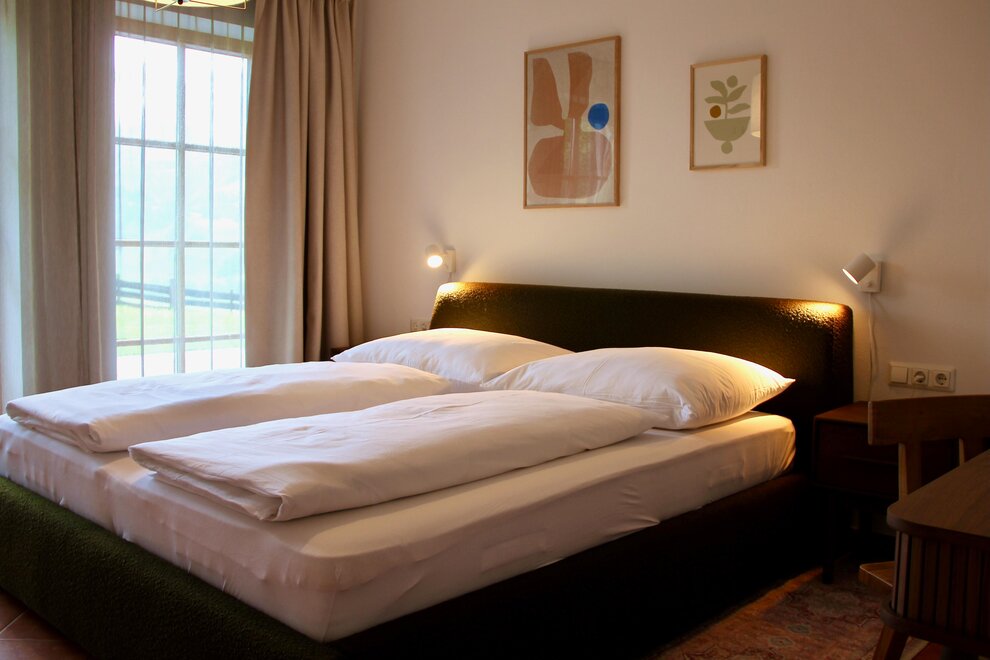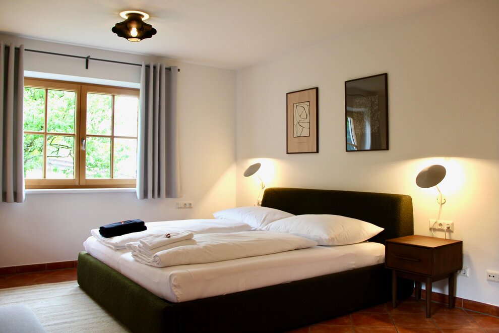 Unser Appartment im Obergeschoß verfügt über zwei getrennte Schlafzimmer mit großem Doppelbett.