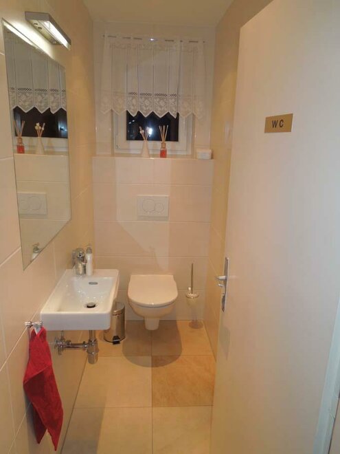 Alle Zimmer sind mi t einem Flatscreen (Kabel-TV) ausgestattet. Im Obergeschoß befindet sich ein Badezimmer mit einer Bade-Duschwanne und WC. Im Parterre befindet sich ein 2. WC.