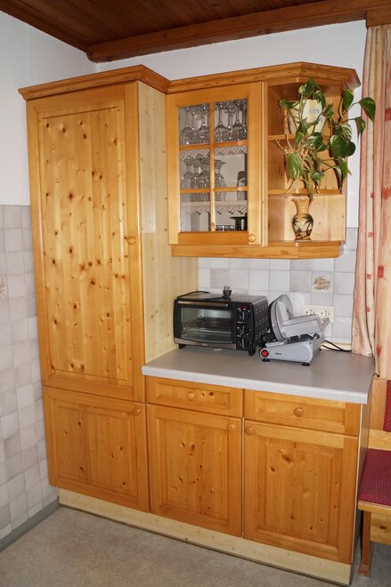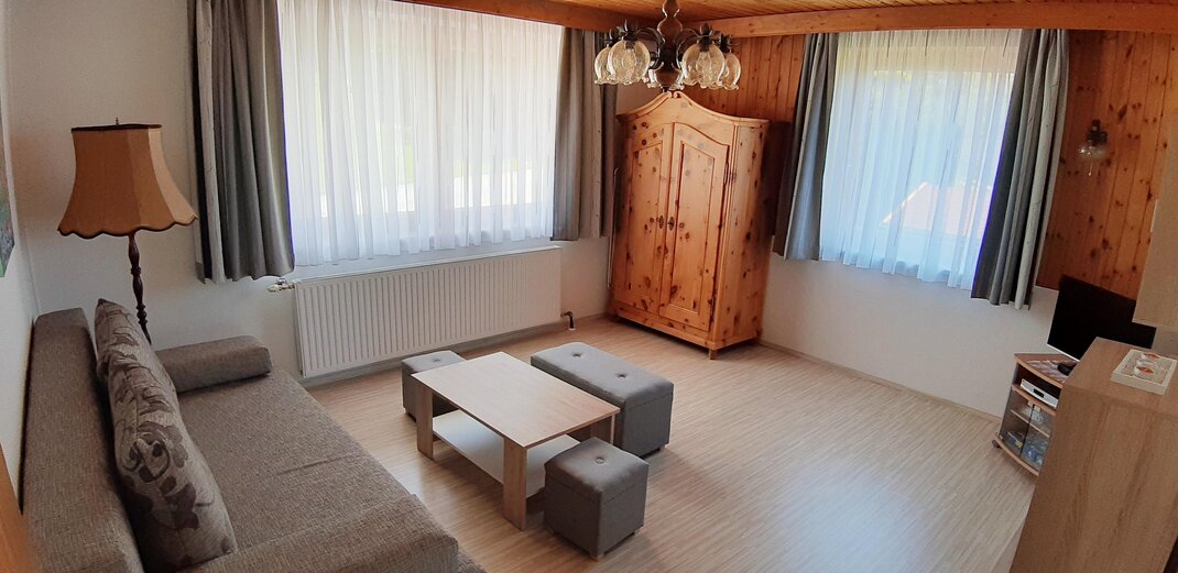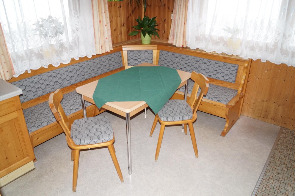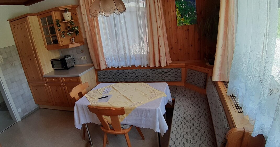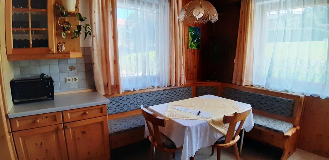 Unsere 58 m2 große Nichtraucher-Ferienwohnung für vier Personen befindet sich im Erdgeschoss eines Einfamilienhauses auf dem sonnigen Hochplateau des Mitterbergs (Gröbmingerland, Region Schladming-Dachstein). --- die rustikale Küche mit großer Eckbank und ausziehbarem Tisch eignet sich durch die gemütliche Atmosphäre nicht nur für gemeinsames Essen sondern wird von unseren Gästen auch sehr gerne als Wohnraum für Spieleabende, usw. genützt und ist bestens ausgerüstet mit Geschirrspülmaschine, Kaffeemaschine, Toaster, Brotmaschine, Mikrowelle, Brötchenaufbackofen, Dunstabzug und sämtlichem Geschirr --- Schlafzimmer mit Doppelbett, Einbauschrank, verschließbarem Schreibtisch und SAT-TV --- Wohn- bzw. Schlafraum mit SAT-TV und gemütlicher Couch , die man perfekt als Schlafmöglichkeit für zwei Personen nützen kann, da sie Doppelgröße und Betthöhe hat. --- Badezimmer mit Dusche --- WC seperat --- Abstellraum mit Kühl-Gefrierschrank-Kombination. Gratis W-LAN! Im Sommer können Sie die Gartenterasse mit Panoramablick auf den Stoderzinken und die Kammspitze genießen. Ihre Fahrräder oder Skiausrüstung können Sie in der absperrbaren Garage sicher verwahren.