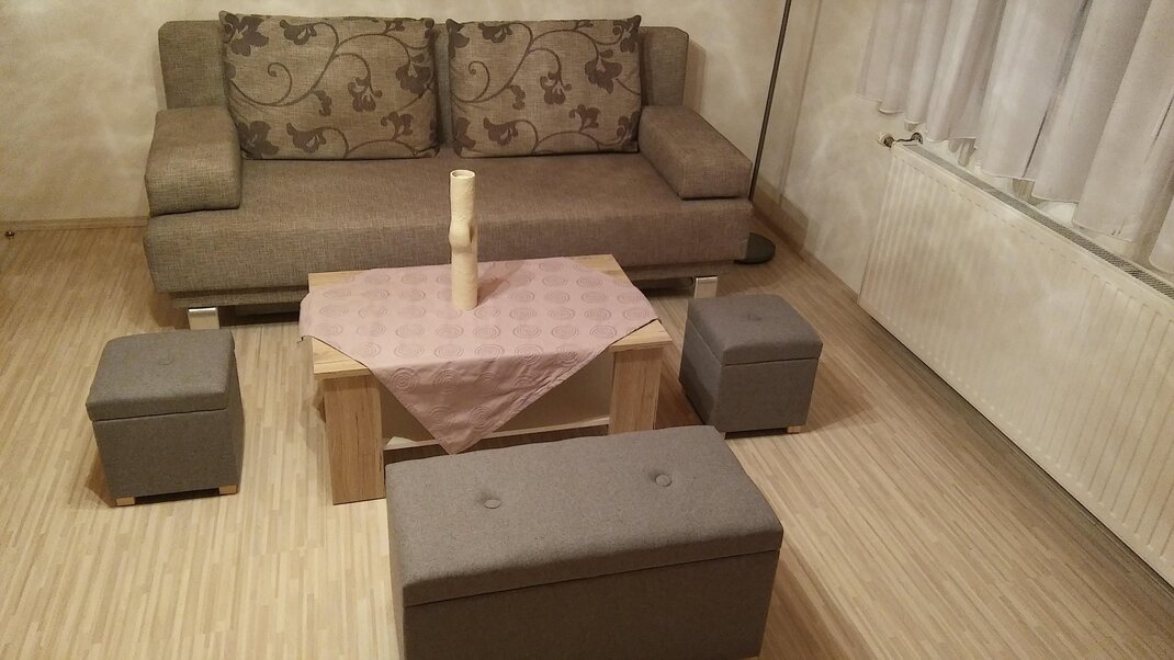 Zentralheizung, Fernseher, Wasserkocher, Toaster, Heizung, Wohn-/Schlafräume kombiniert, Nichtraucher Zimmer/App./Whg., Küchengeräte, Kühlschrank, Kaffee-Maschine, Gefrierfach, WiFi, Radio, Geschirrspülmaschine, Größe m²: 58, Bettwäsche vorhanden, Dunstabzug, Elektroherd, Kochmöglichkeiten, Mikrowelle, Satellitenfernsehen, Backofen, Haustiere mit Rücksprache gestattet, Garten, Abstellraum, Separate Küche, Geschirr vorhanden, Handtücher vorhanden, Küche