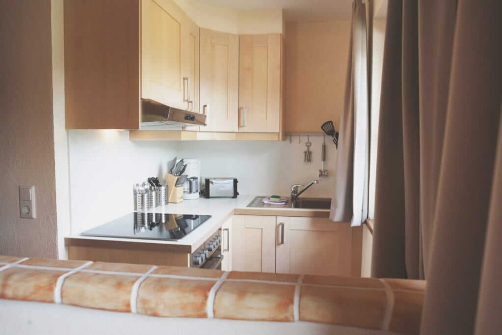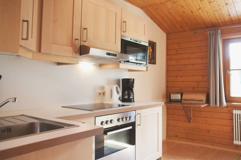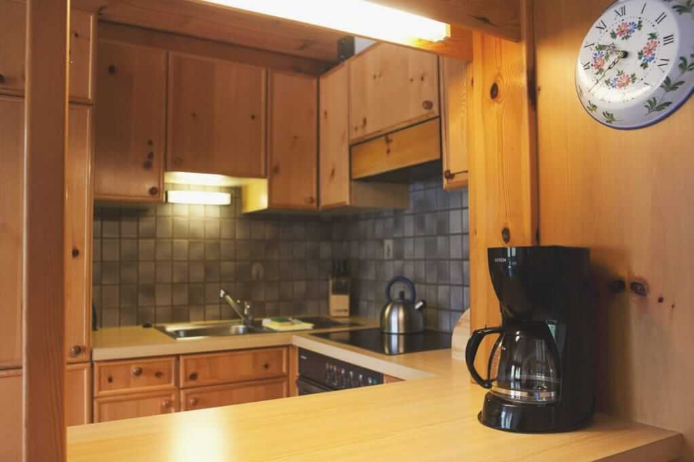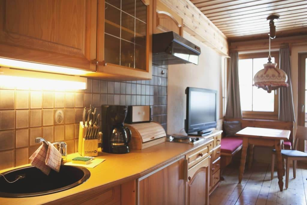 Elektroherd, Nichtraucher Zimmer/App./Whg., Kochnische, Rustikale Möblierung, Dunstabzug, Geschirr vorhanden, Sitzgruppe, Wohnküche, Backofen, Bettwäsche vorhanden, Satellitenfernsehen, Fernseher, Gefriermöglichkeit, Geschirrspülmaschine, Mikrowelle, Geschirrspülbecken, Wohn-/Schlafräume getrennt, Kaffee-Maschine, Kühlschrank, Balkon (teilweise)