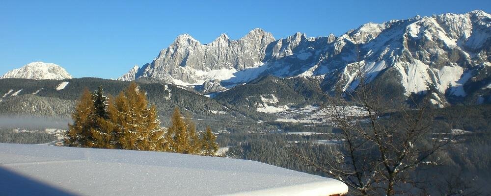 In wunderschöner Panoramalage, direkt am Wald, mit herrlicher Aussicht auf den Dachstein und das Ennstal liegt auf 1150 Meter Seehöhe unser gepflegtes ***Gästehaus. Unser Haus ist im Sommer ein idealer Ausgangspunkt für Wanderungen (Bushaltestelle 30 m vor dem Haus) in der herrlichen Bergwelt der Dachstein-Tauern-Region und im Winter steht ein breites Angebot für viele Sportarten (Alpinski, Langlaufen, Snowboard, Rodeln) bereit. Pisten und Rodelbahn (auch für Sommerrodeln) sind direkt hinter dem Haus gelegen und ohne PKW bequem erreichbar, ein tolles Gebiet mit Schnee - und Lawinensicherheit!