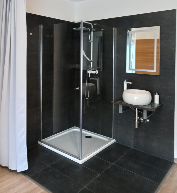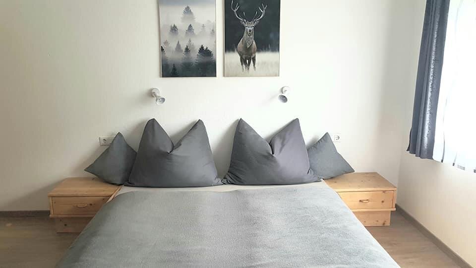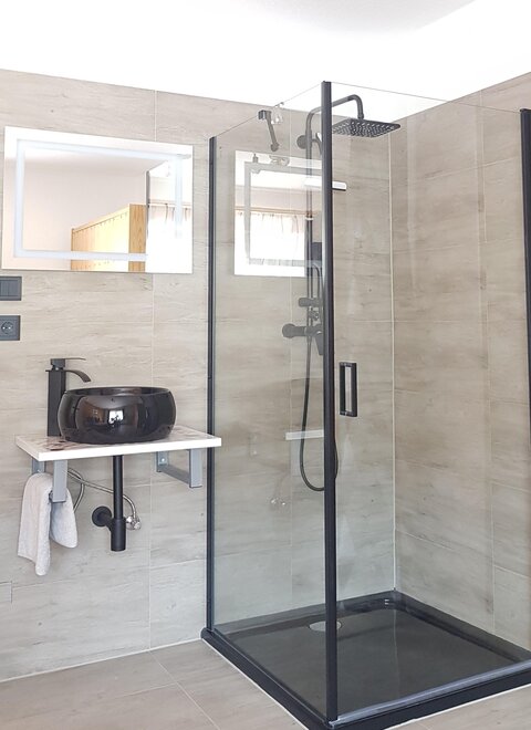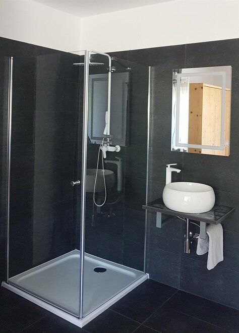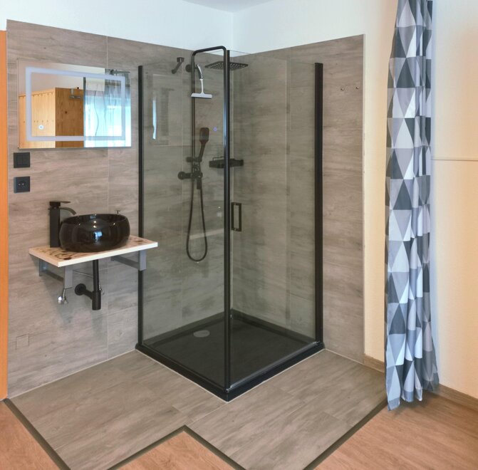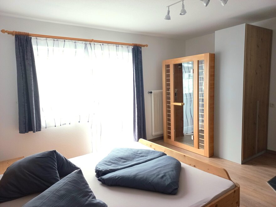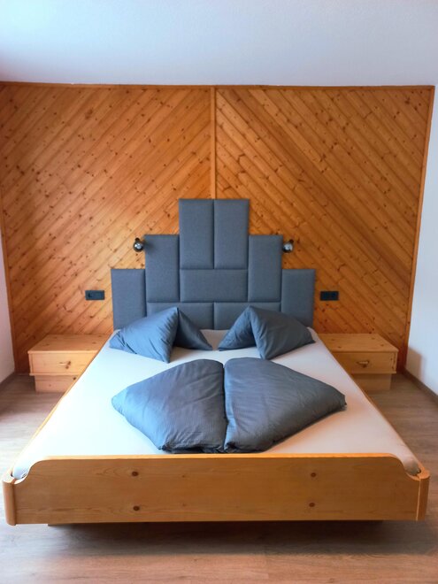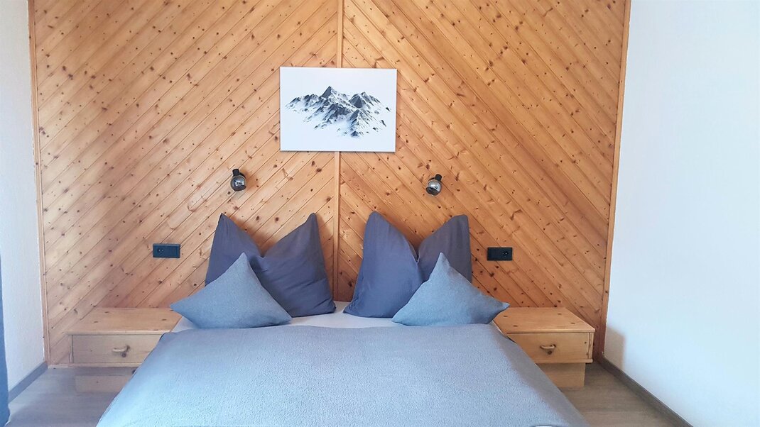 Das Apartment befindet sich im Obergeschoss unseres Hauses (Platz für bis zu 5 Personen) und verfügt über 2 Schlafzimmer mit jeweils einem offenen Bad, 1 Zimmer mit Schlafcouch und Waschbecken, Infrarotkabine und einem Wohn-Essbereich mit neuer, vollausgestatteter Küche. Die Zimmer verfügen über Echtholzmöbel und einem angenehmen hellen Designboden. Der große Balkon mit Planaiblick runden das Ambiente ab und machen Euch den Aufenthalt zum Wohlfühlmoment.