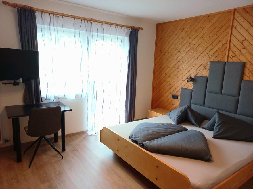 Neue helle Zimmer, ein modernes offenes Bad, Echtholzmöbel, Balkon mit Planaiblick