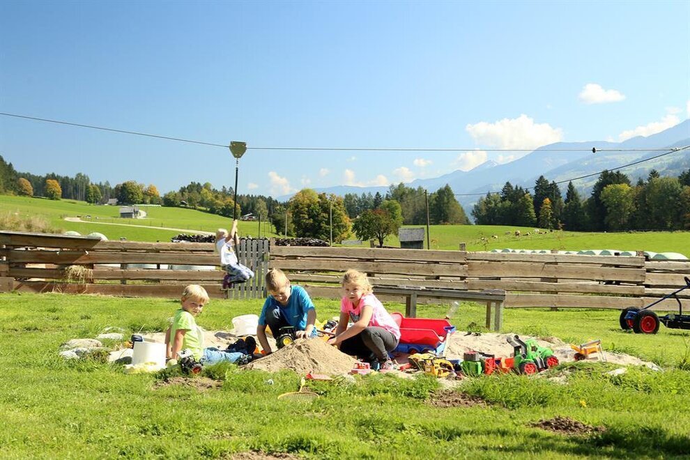 Urlaub am Bauernhof bedeutet bei uns viel Platz für Ihre Kinder. Im Sommer können sich unsere jüngsten Gäste am hauseigenen Spielplatz austoben oder auch mal im Stall die zahlreichen Tiere besuchen – sie freuen sich immer über Streicheleinheiten. Im Winter ist genügend Platz für Schneeballschlachten, Schneemannbauen und Toben im Winterwald.