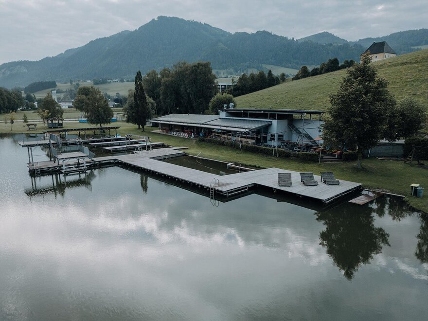 Anreise: Bundesstrasse (B320) - Ausfahrt Wörschach - Richtung Aigen - am Ortsende vor dem See links abbiegen - 200m folgen - dann nochmal links abbiegen und dieser Strasse 200m folgen