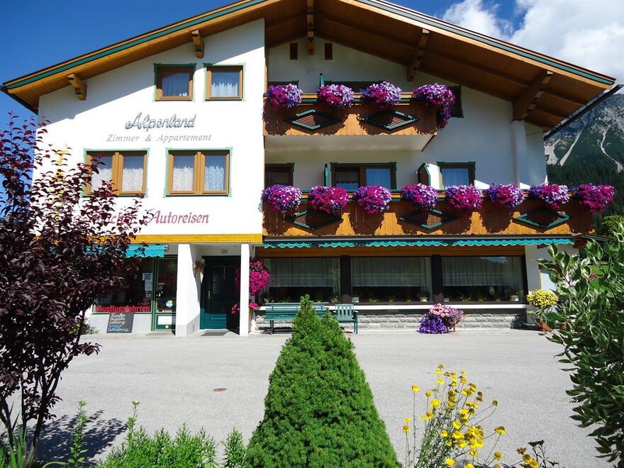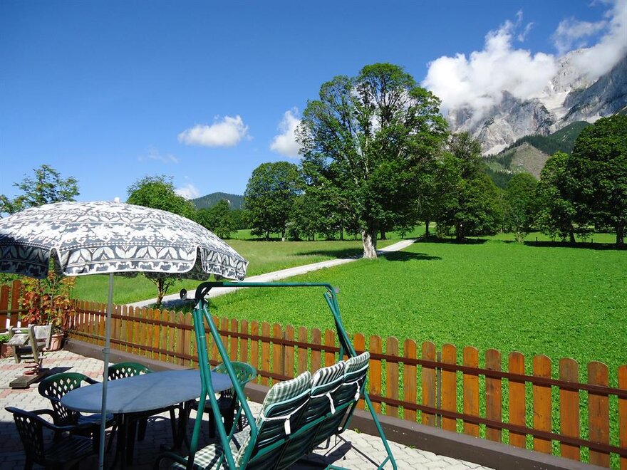 Unsere Frühstückspension Alpenland liegt mitten in Ramsau am Dachstein auf 1111m Seehöhe. Wanderwege und Langlaufloipen Einstieg diereckt vorm Haus. Abholservice vom Bahnhof und Flughafen. Reichhaltiges Frühstücksbuffet, Sonnenterasse mit Blick auf das Dachsteinmassiv.