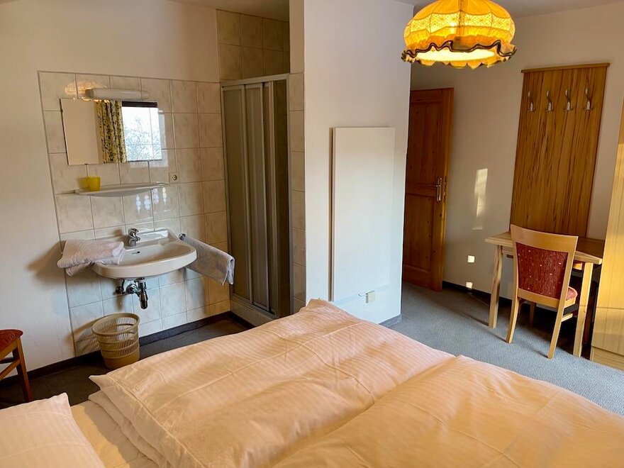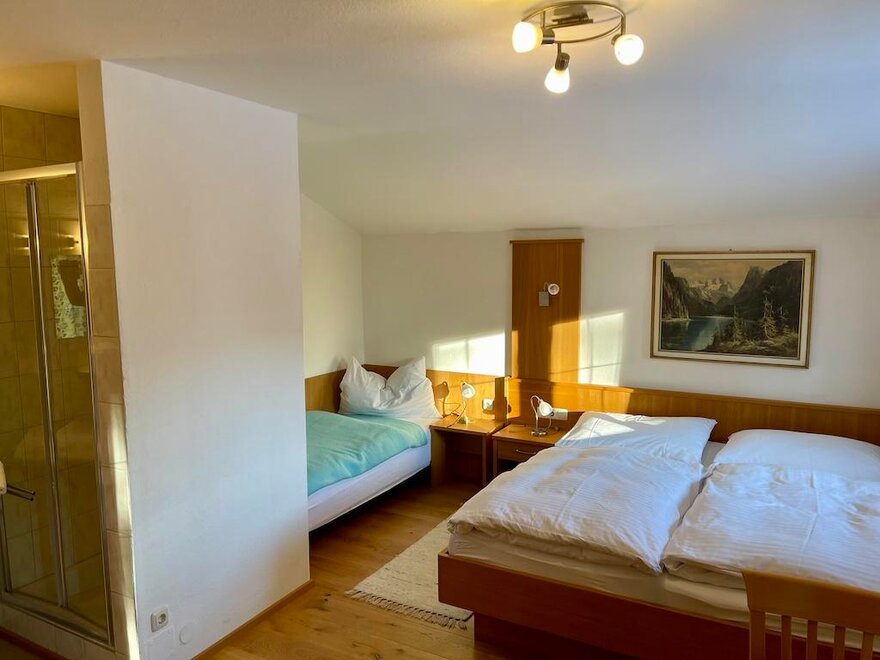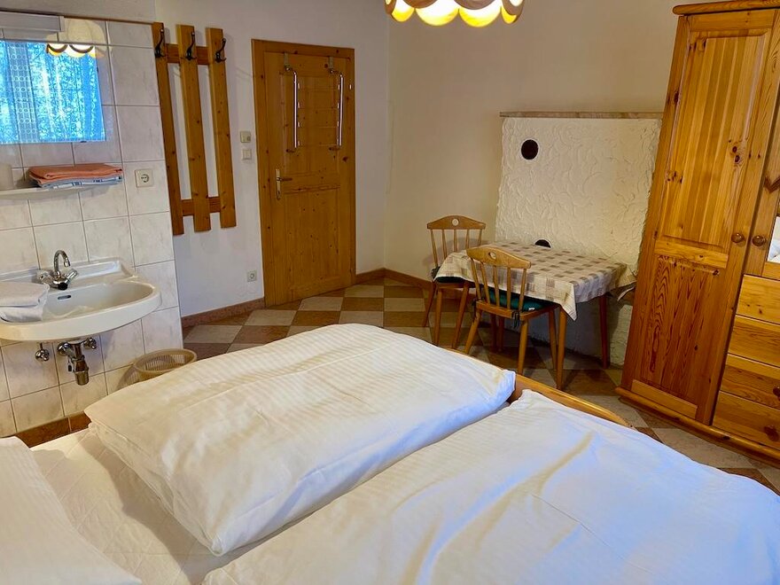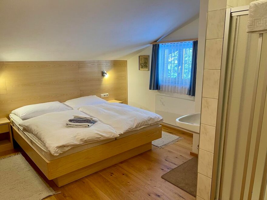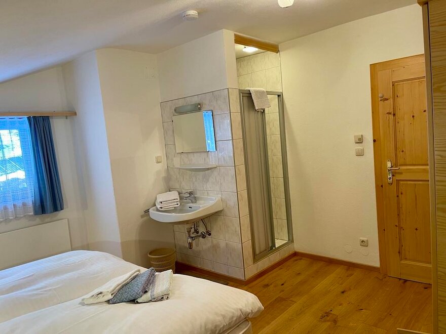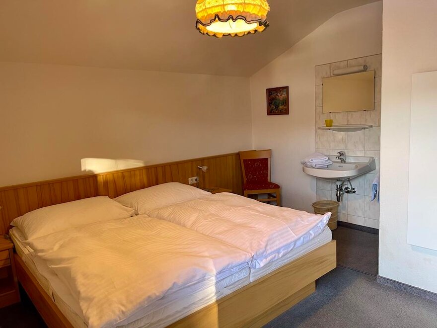 - Drei Doppelzimmer mit eigenem Waschbecken und Dusche.