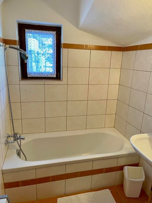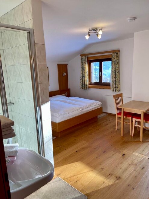 - Ein Doppelzimmer mit eigener Dusche und Waschbecken. Die voll ausgestattete Küche mit Backofen, Geschirrspüler und Tiefkühler lässt keine Wünsche offen. Zusätzlich gibt es ein Badezimmer und ein separates WC.