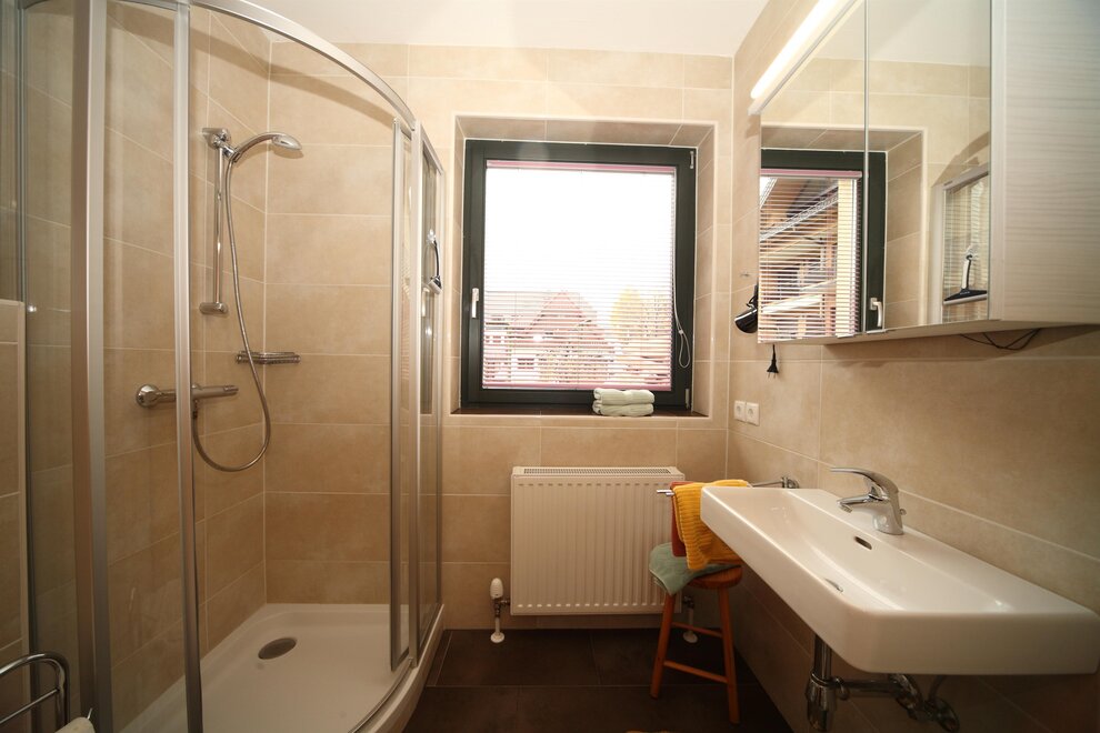 Großes, geräumiges Dreibettzimmer mit Dusche und WC, Balkon sowie TV