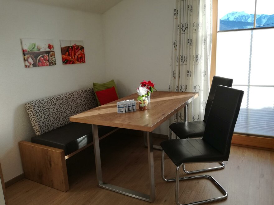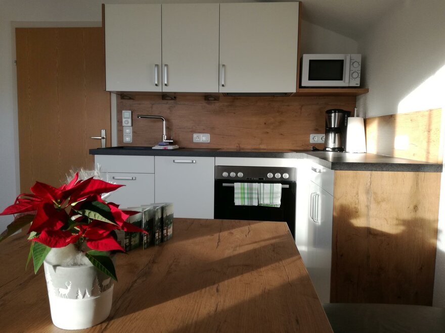 Gemütliche Ferienwohnung - 55 m² mit behaglicher Wohnküche, Essecke und Sofa ist mit allen erforderlichen Geräten – wie Mikrowellenherd, Backrohr, Kühlschrank, 4 Platten E-Herd, Geschirrspüler, sowie SAT-TV mit Flachbildschirm, Radio und gratis W-LAN - Internetzugang ausgestattet. Weiteres umfasst das Appartement zwei Doppelzimmer und ein geräumiges Bad mit Dusche. Badezimmer und WC sind räumlich getrennt. Die Kosten für Strom, Heizung, Wasser, die Benützung der Garage sowie die Endreinigung und Ortstaxe sind im Angebotspreis inkludiert. Bettwäsche, Geschirr-, Hand- und Badetücher werden kostenlos zur Verfügung gestellt.