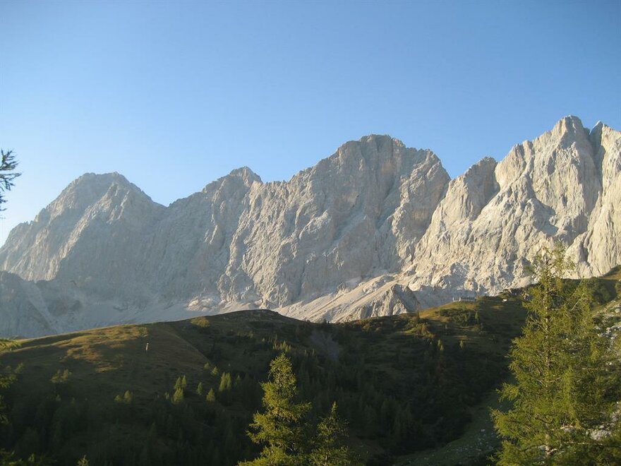 Ausblick in die Bergwelt der Schladminger Tauern und des Dachsteingebirges.