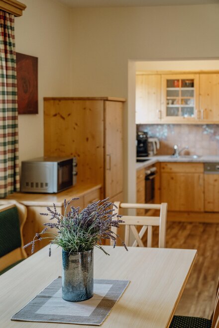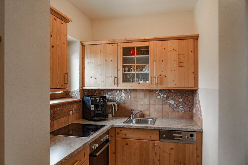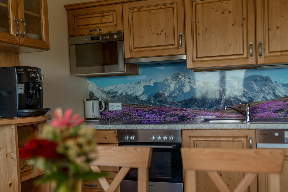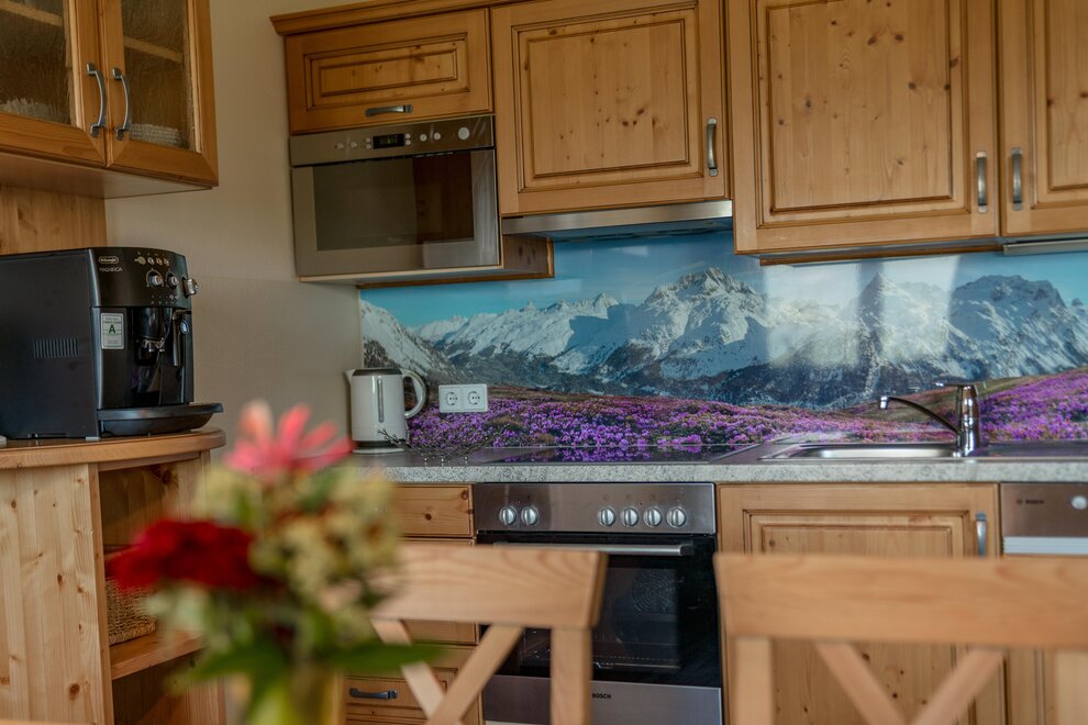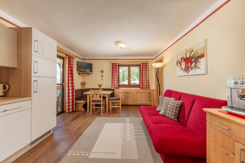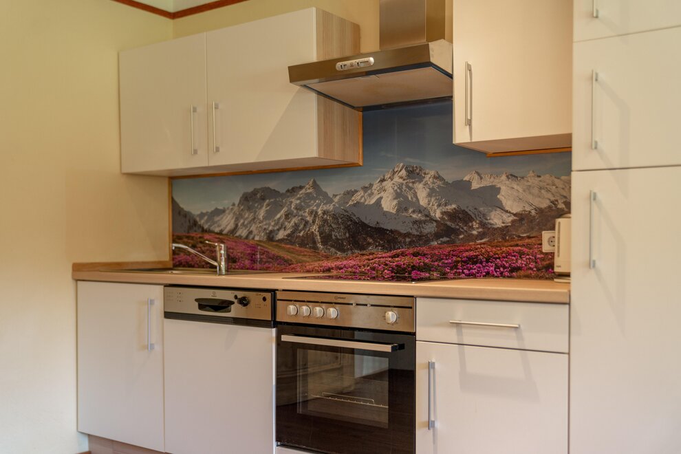 Unser Nichtraucher-Appartement "Ahorn" für 2 bis 4 Personen ist mit einem Schlafzimmer, einem Wohnzimmer mit ausziehbarem Sofa, Küche (mit E-Herd, Backrohr, Geschirrspüler, Kühlschrank, Geschirr, Saeco-Kaffeemaschine, Wasserkocher, Toaster sowie Spül- und Reinigungsmittel), Bad, WC und Balkon ausgestattet. Sat-TV und gratis W-Lan!