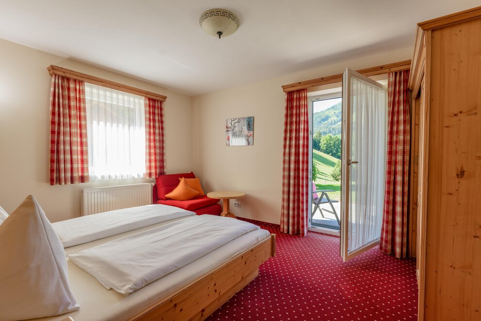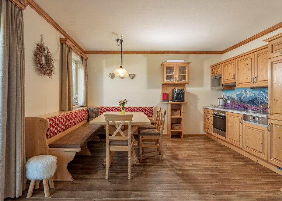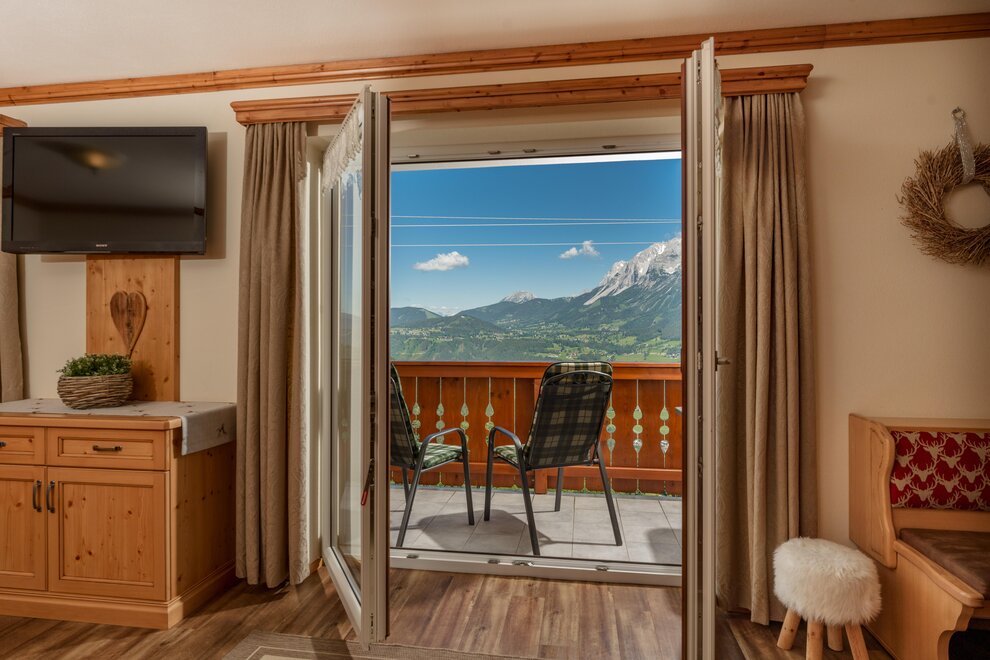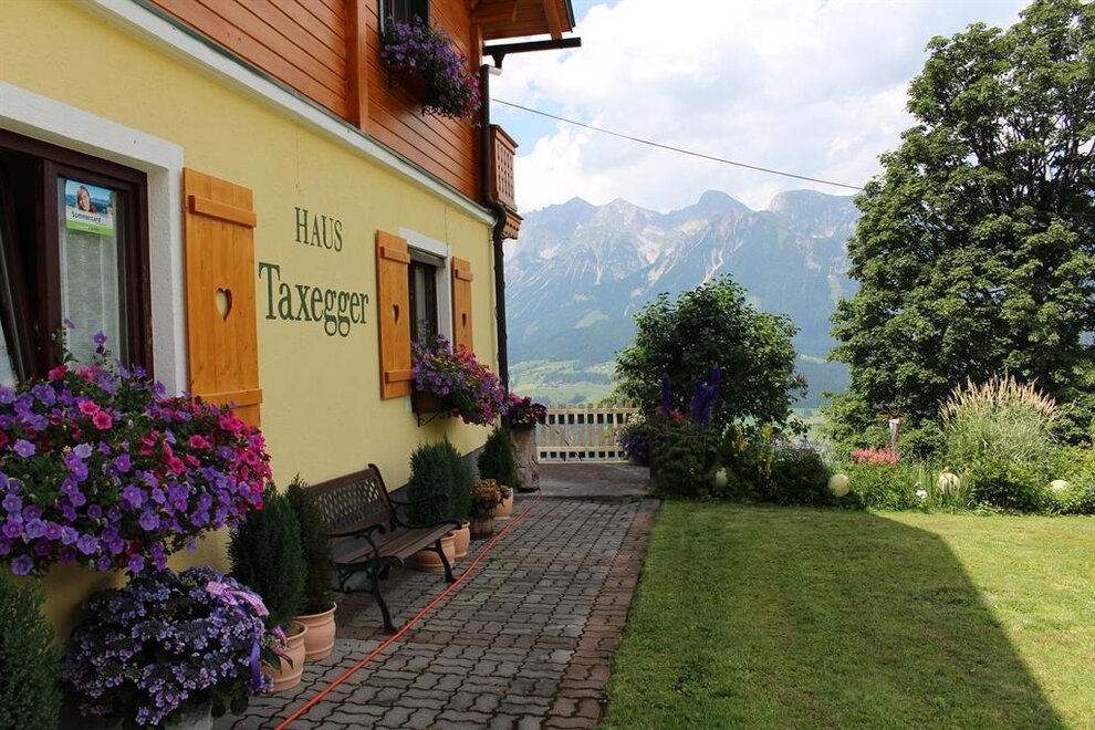 Umgeben von Wiesen und Wäldern in ruhiger, sonniger Lage auf 1.100 m Seehöhe wohnen Sie in unseren 5 neu errichteten Nichtraucher-Appartements. Wir bieten verschiedene Wohnungstypen für 2 bis 7 Personen an. Je nach Wohnungsgröße stehen Ihnen ein bis zwei getrennte Schlafzimmer zur Verfügung. Jedes Appartement hat zusätzlich ein Wohn-Schlafzimmer, eine voll ausgestattete Küche sowie Badezimmer mit Dusche und WC. Sat-TV und gratis W-Lan sind im Haus Taxegger selbstverständlich vorhanden. Was Sie aber ganz besonderes genießen werden, ist die faszinierende Aussicht vom Balkon der Appartements auf das Dachstein-Massiv.