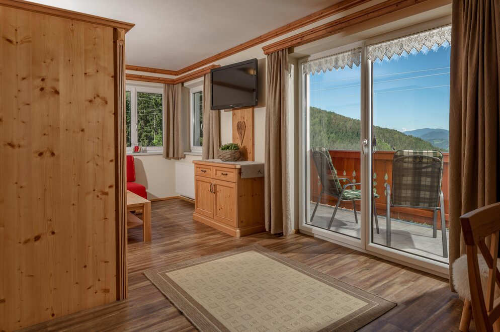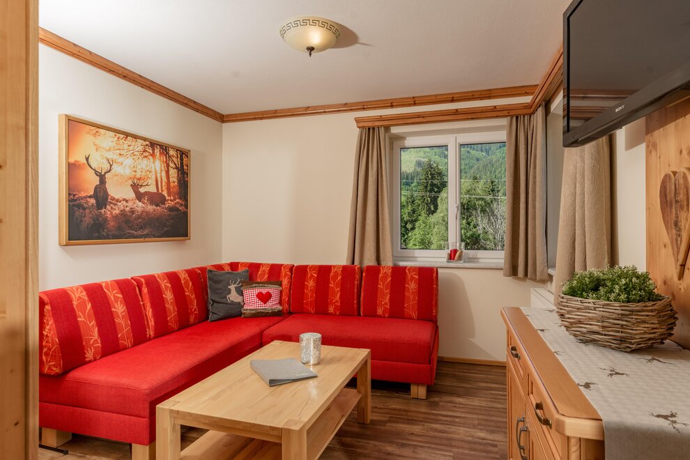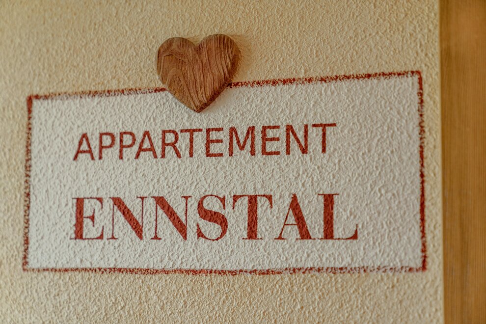Unser Nichtraucher-Appartement "Ennstal" für 2 bis 4 Personen(max. 2EW 2KD oder1EW und 3KD )nicht für 3oder4 Erwachsene gedacht das Schlafzimmerhat ein Doppelbett und eine Doppelcouch, einer Wohnküche (mit E-Herd, Backrohr, Geschirrspüler, Kühlschrank, Geschirr, Saeco-Kaffeemaschine, Wasserkocher, Toaster sowie Spül- und Reinigungsmittel), Bad, WC und Balkon mit Blick ins Tal und Berge ausgestattet. Sat-TV und gratis W-Lan!