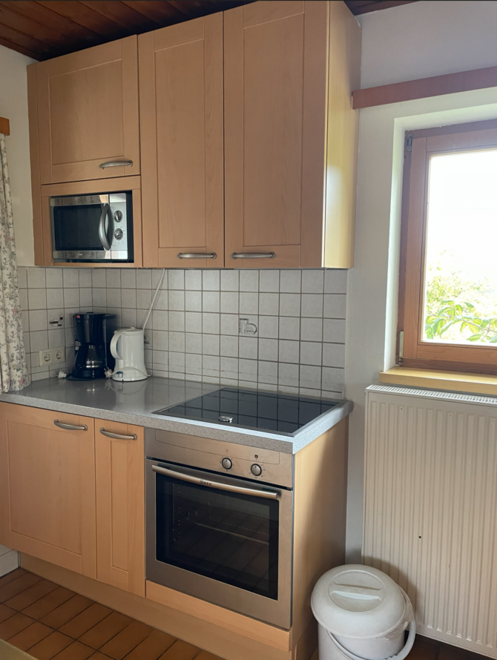 Unser kleiner Bungalow an der Hofeinfahrt ist sehr gut ausgestattet. Neben Wohnküche mit zusätzlichen Holzofen haben Sie 2 SZ, Bad mit Dusche , ein WC sowie eine Vorraum zur Verfügung. Weiters Balkon und eigene Terrasse mit Fernblick!