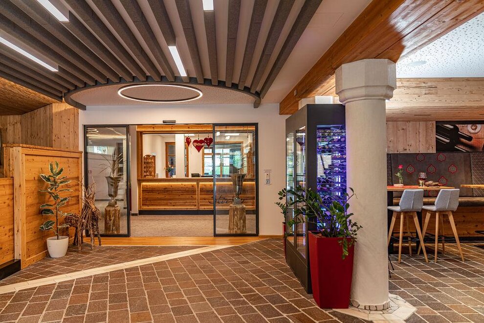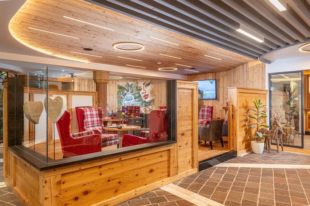 Die gemütlichen Zirbenzimmer, der großzügige SKY Spa Sauna-Wellnessbereich (Adults Only) & Familiy Spa (mit Infinity Pool und Textil Sauna) sowie die modernisierte Lounge und der Buffetbereich vereinen Tradition und Moderne.